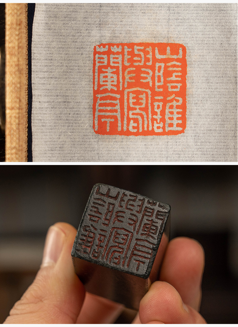 清代 红木镶瘿木嵌寿山石山水人物插屏