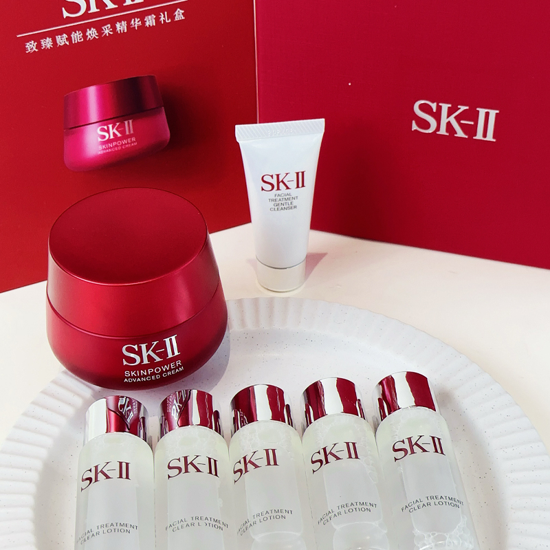 SK-II SK2 新版大红瓶面霜一拖六套盒(大红瓶80g(滋润版)+清莹露30ml*5瓶+洗面奶20g*1支)
