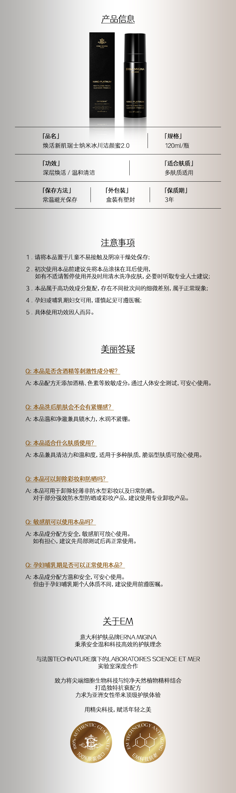 【IDS】ERBA MIGINA 2.0冰川洁颜蜜120ml