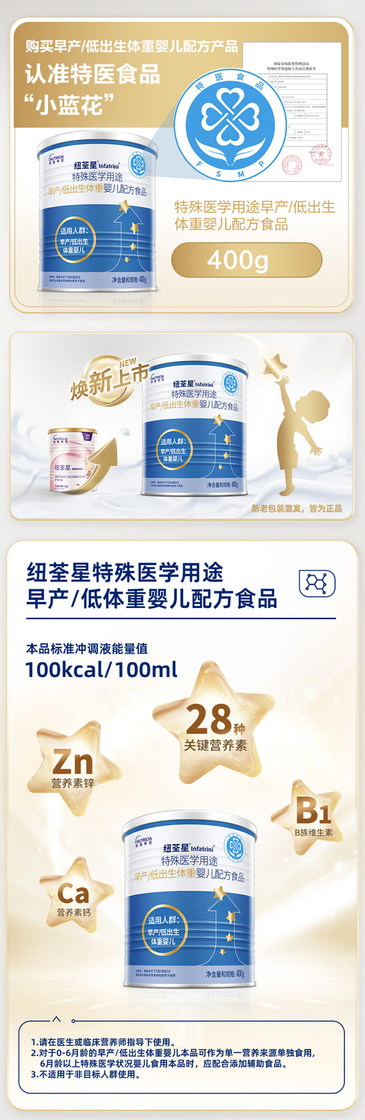 纽荃星(infatrini) 出院后早产儿低体重奶粉400g