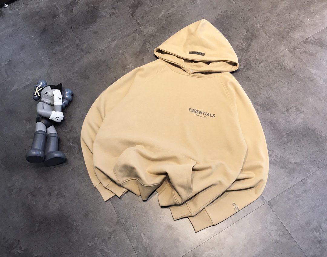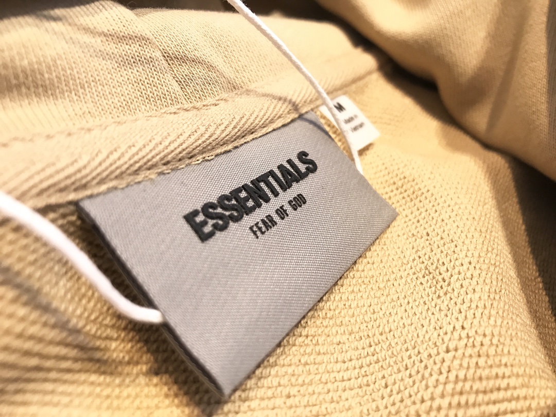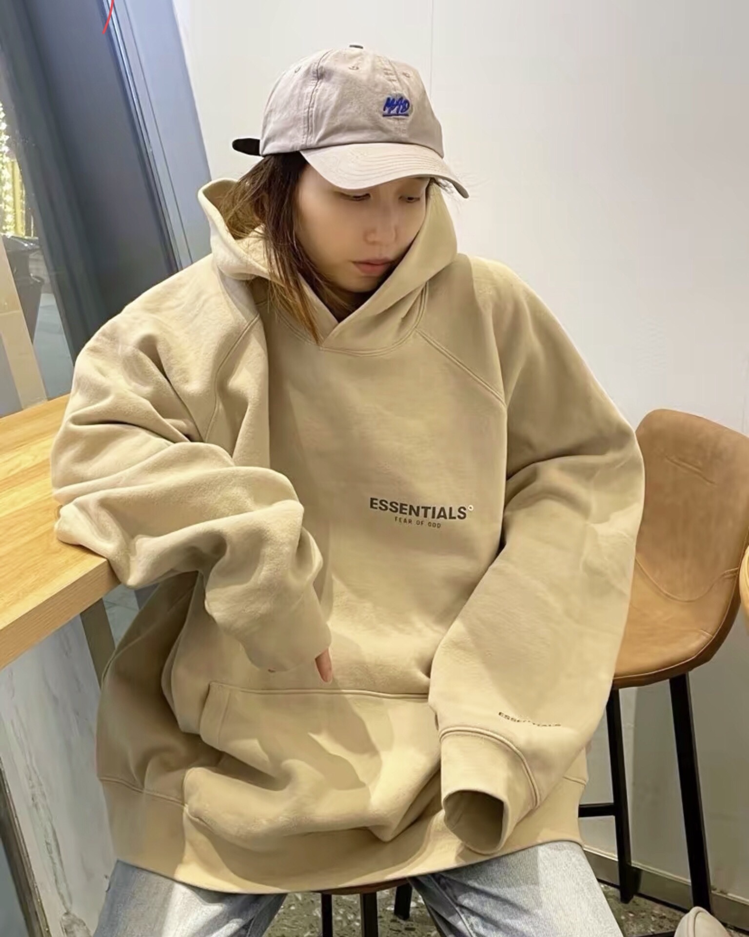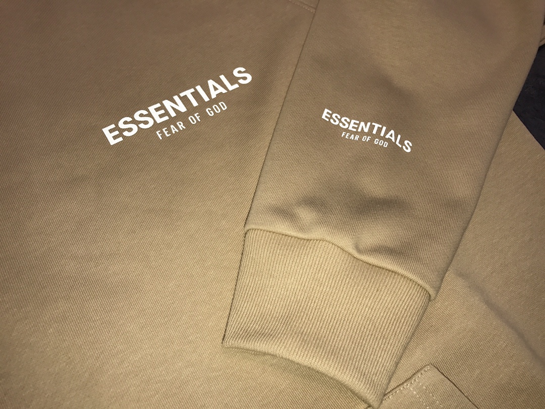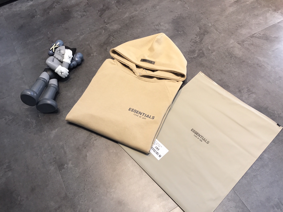110 货号090732110 ks 潮~fog复线essentials高街胸前手臂字母反光连帽 卡其色上身太好看了 太流行的颜色了 胸前3M反光字母全部开模完美原版size 遇光镭射反光 手臂上面也是 帽子上面定制胶皮logo 纯棉400g毛圈面料 上身舒服 每一件都独立包装袋 男女同款 尺寸 L