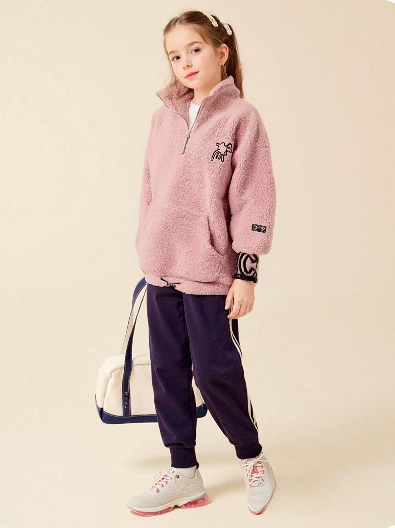 【孤品捡漏】G05女童颗粒绒半拉链秋冬卫衣-喜出