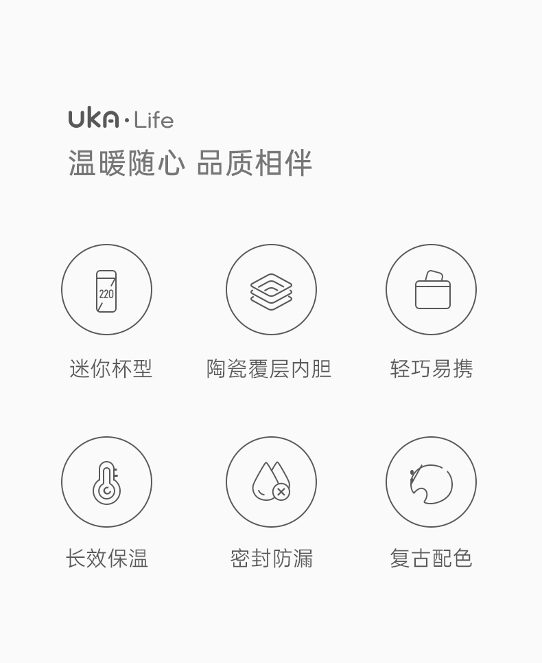 UKA 口袋保温杯 陶瓷覆层内胆 轻巧便携 长效保温 钢琴烤漆工艺 耐磨防脏