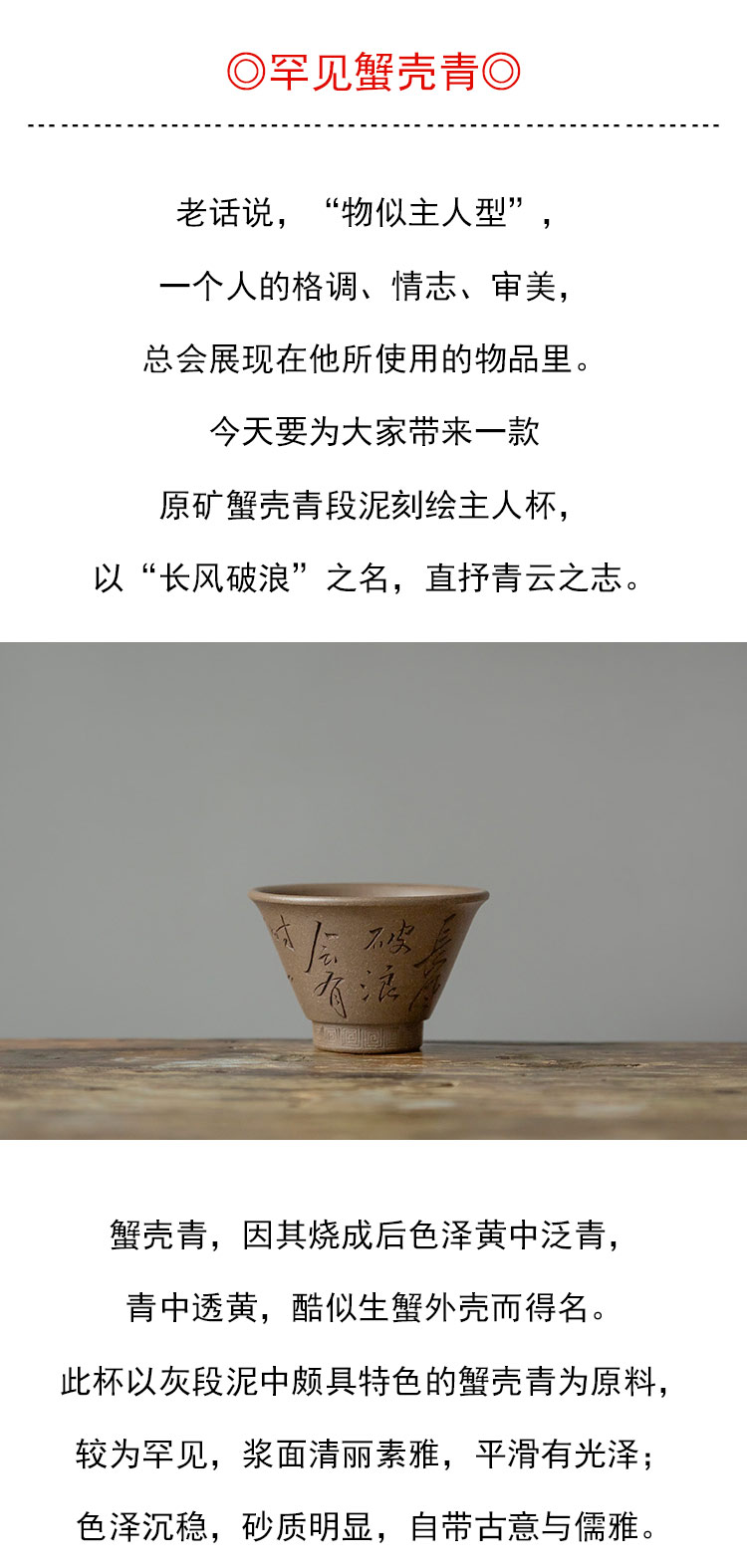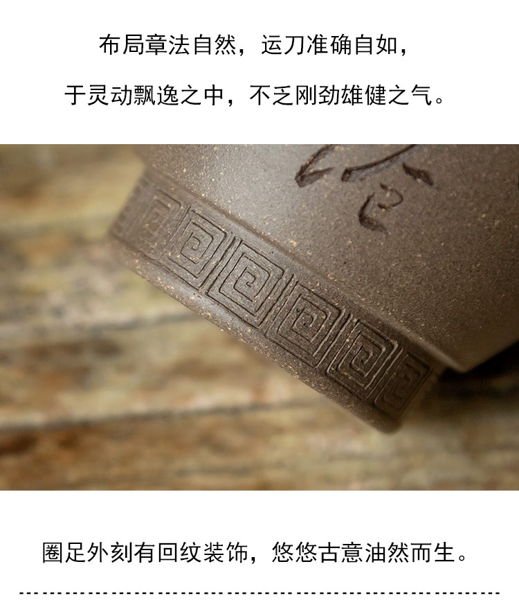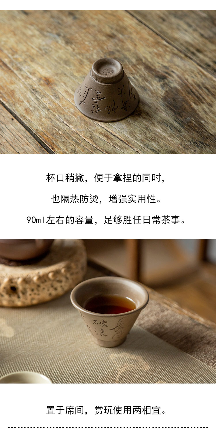 茶香记 紫砂原矿蟹壳青段泥 刻绘主人杯90ml手工刻绘品茗杯茶杯