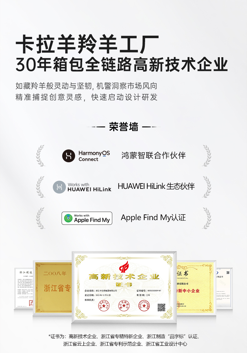 - 浙江卡拉扬集团有限公司专注箱包27年,旗下有卡拉羊和9UM两大品牌,有浙江海宁和江苏沭阳两大工厂,拥有多项知识产权,是集智能化、设计生产、品牌营销为一体的综合型企业。