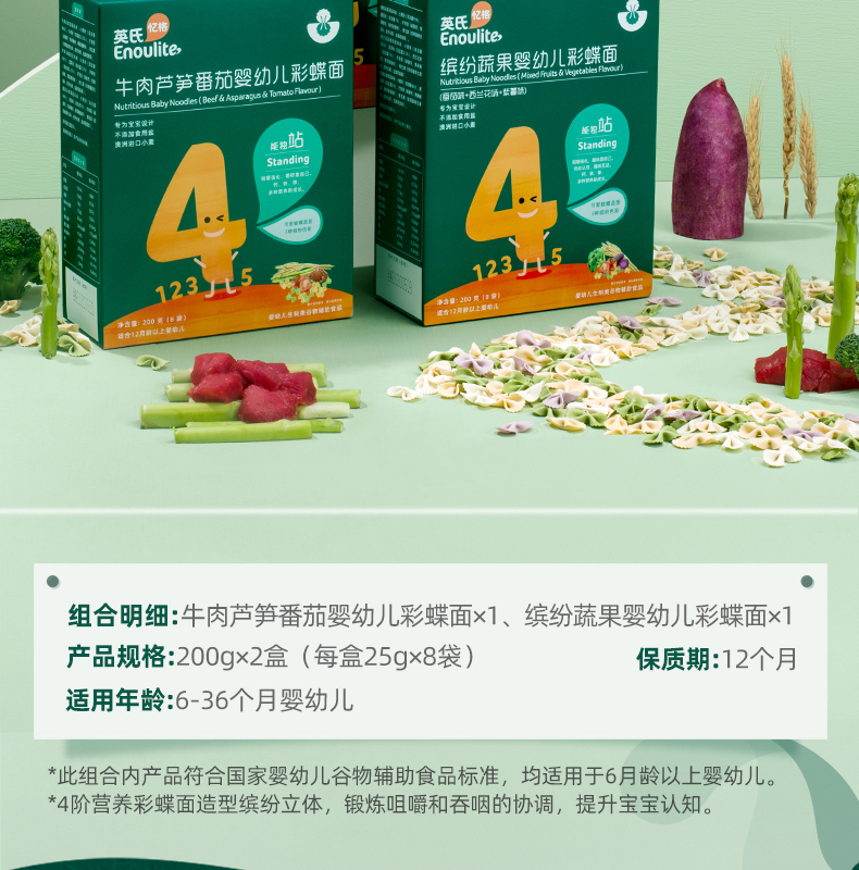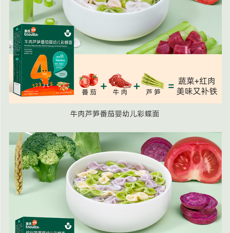 英氏*彩蝶面牛肉芦笋番茄 4段200克(8袋)