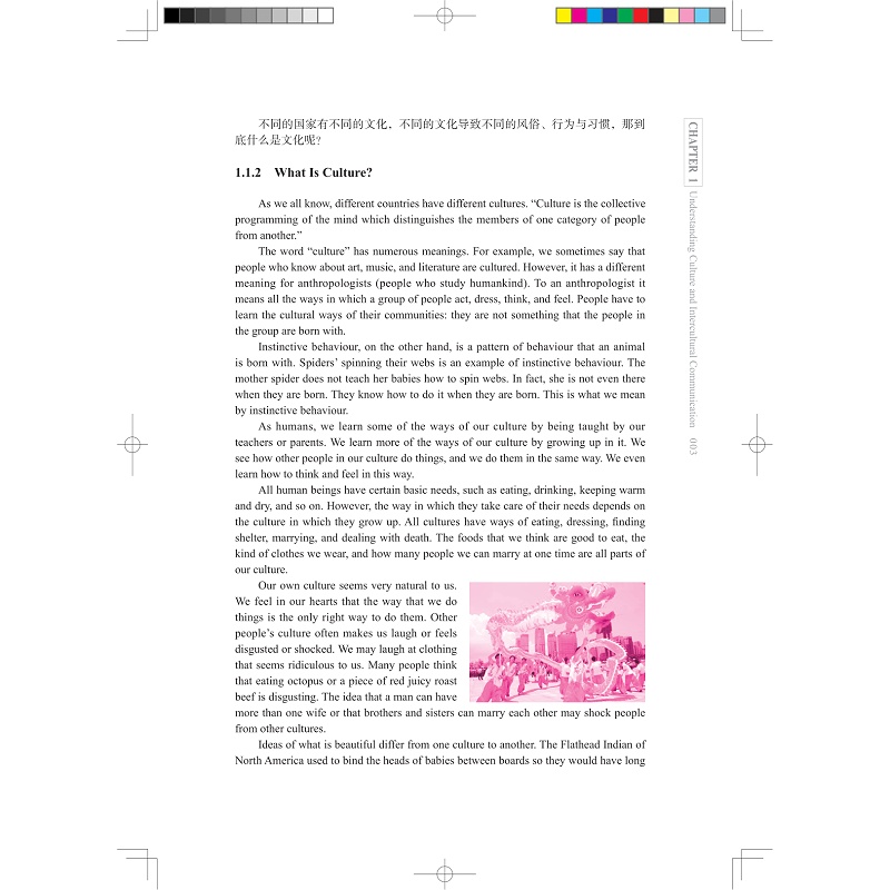 本教材旨在以具体事例唤醒学生的跨文化意识、以选文增长学生的跨文化知识、以多样性的课内外活动增加学生的跨文化情感体验,从而帮助学生提高跨文化交际能力。