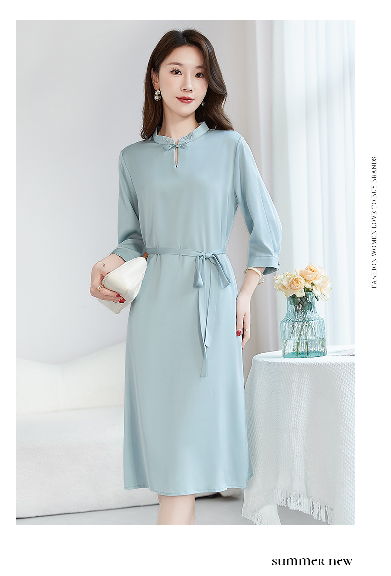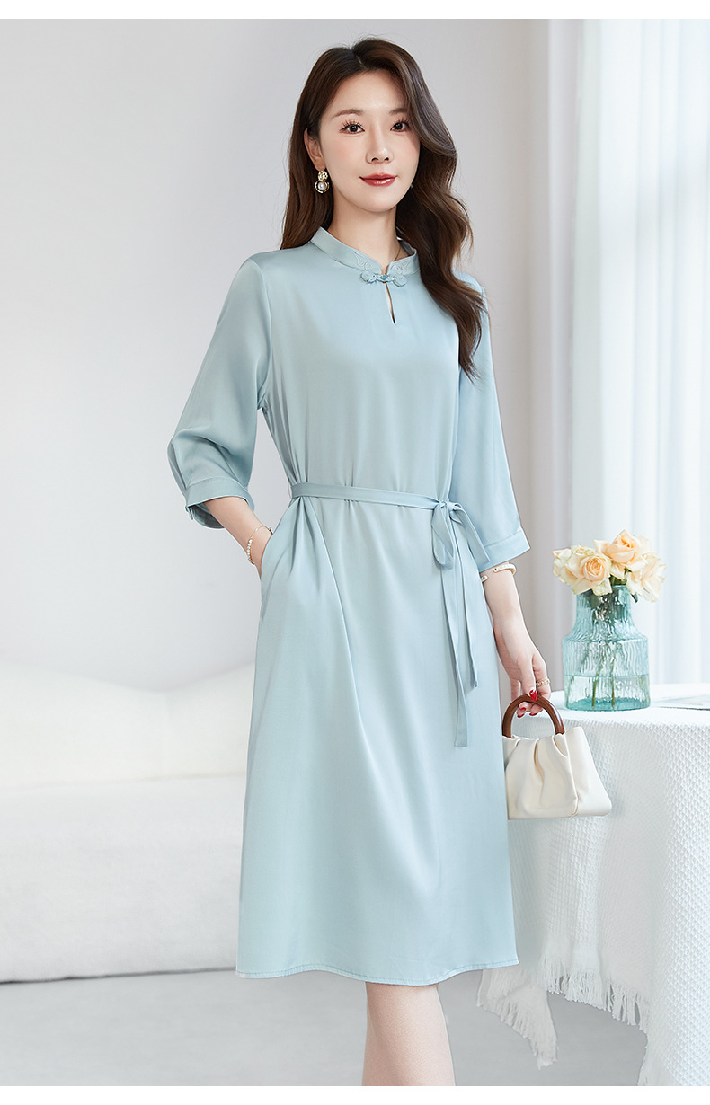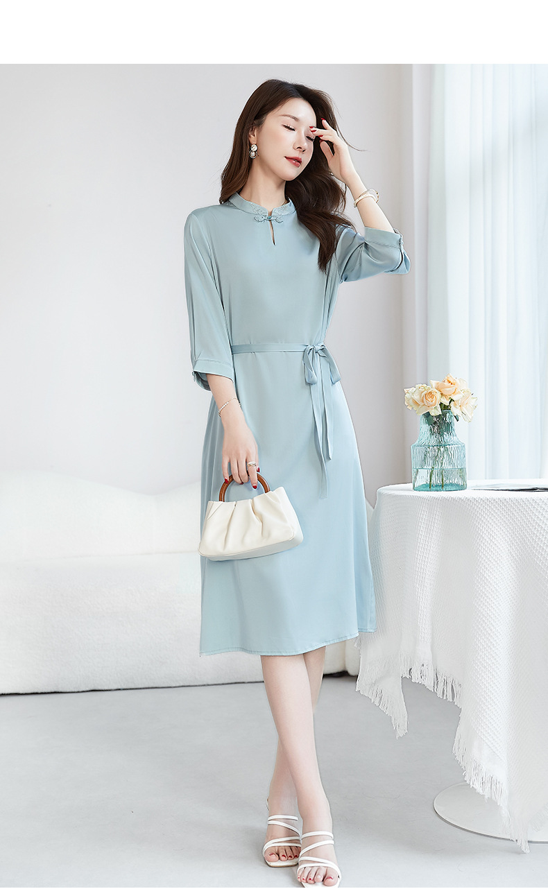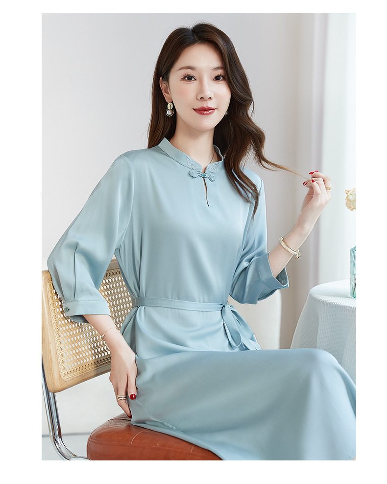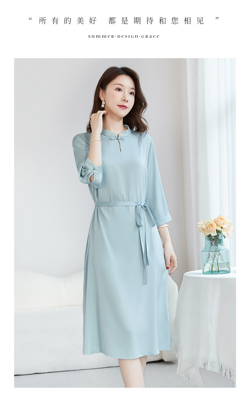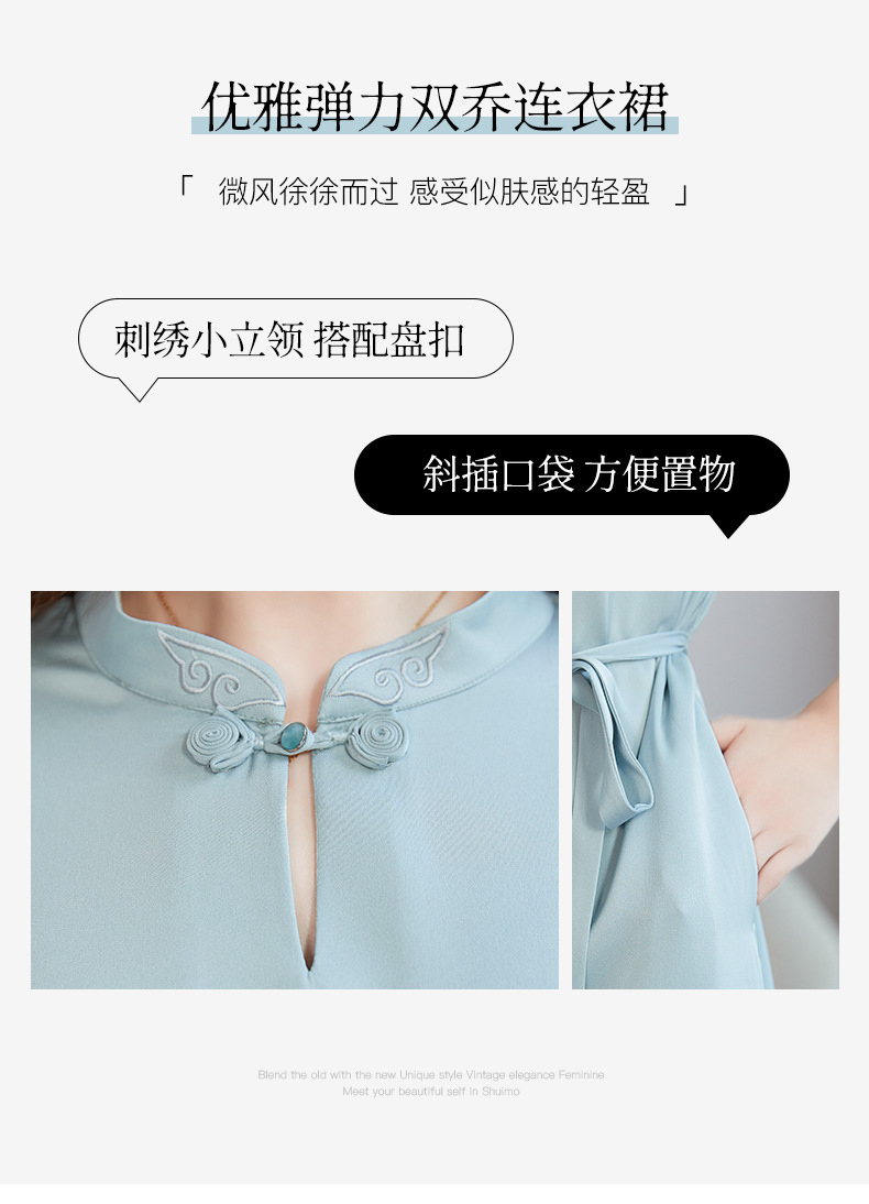 QS-【国风新中式】盘扣立领真丝连衣裙弹力双乔桑蚕丝连衣裙女6232