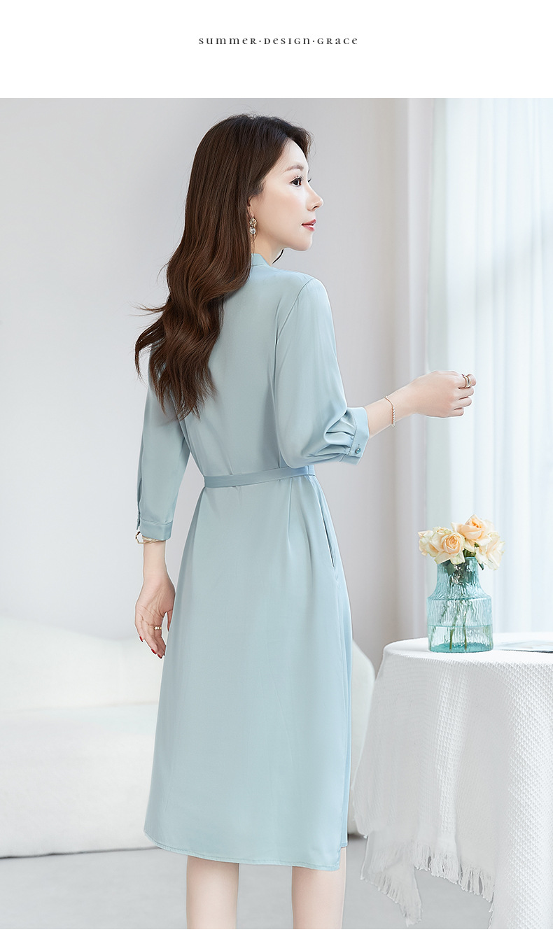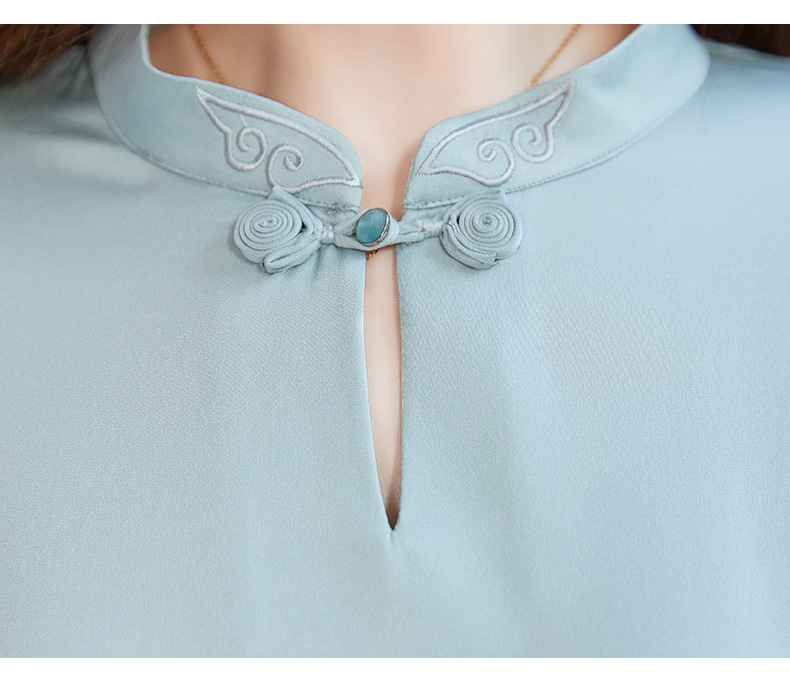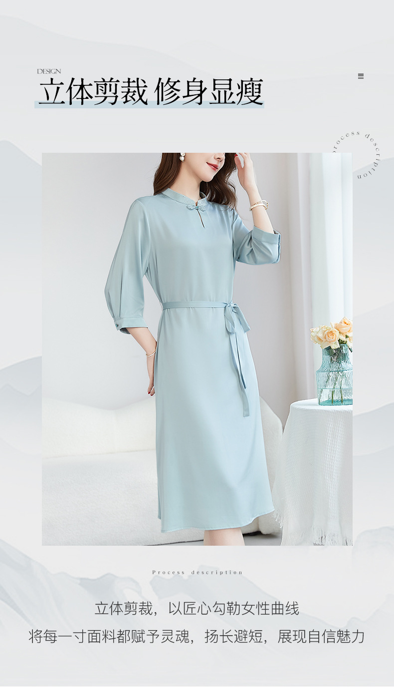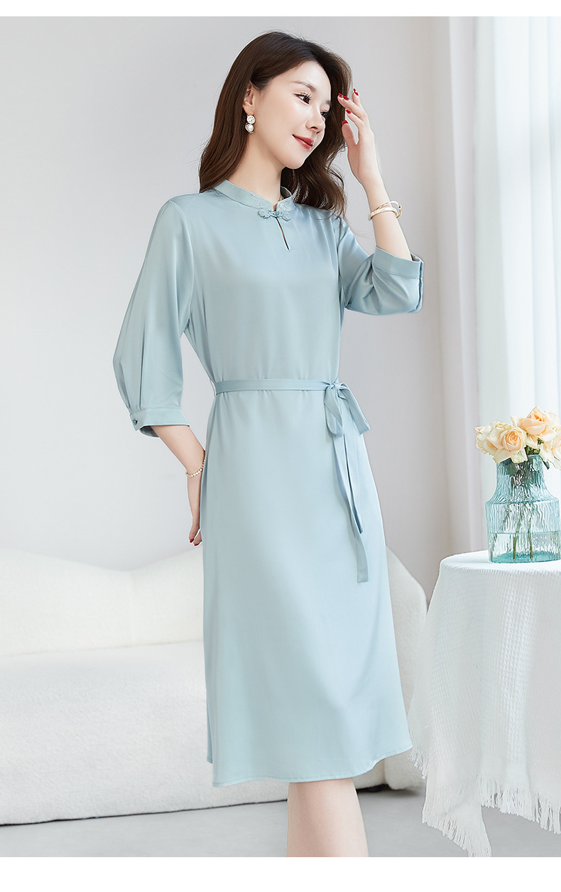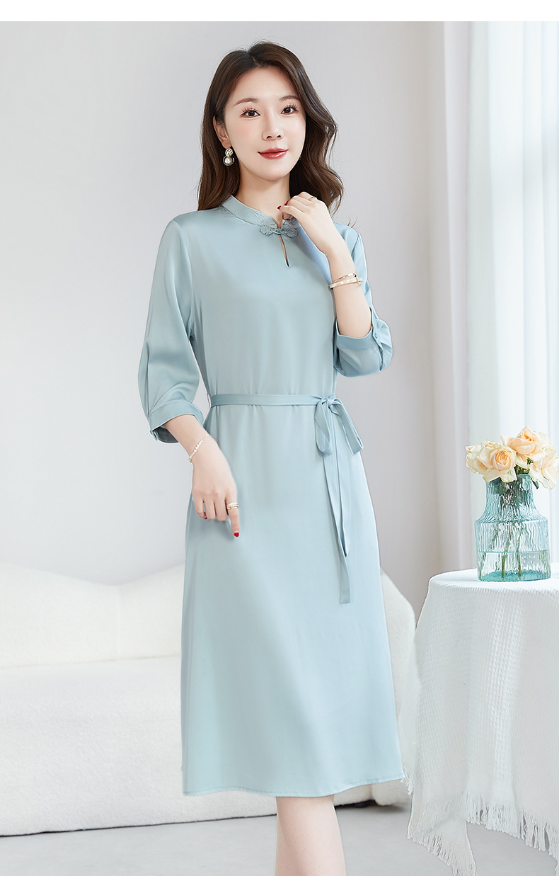 QS-【国风新中式】盘扣立领真丝连衣裙弹力双乔桑蚕丝连衣裙女6232