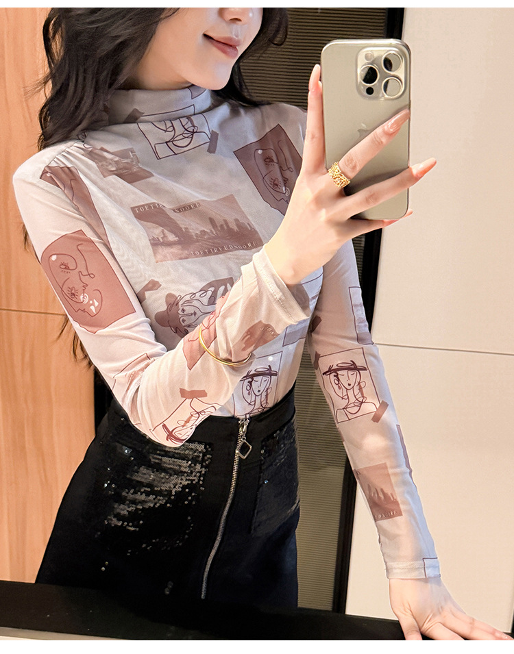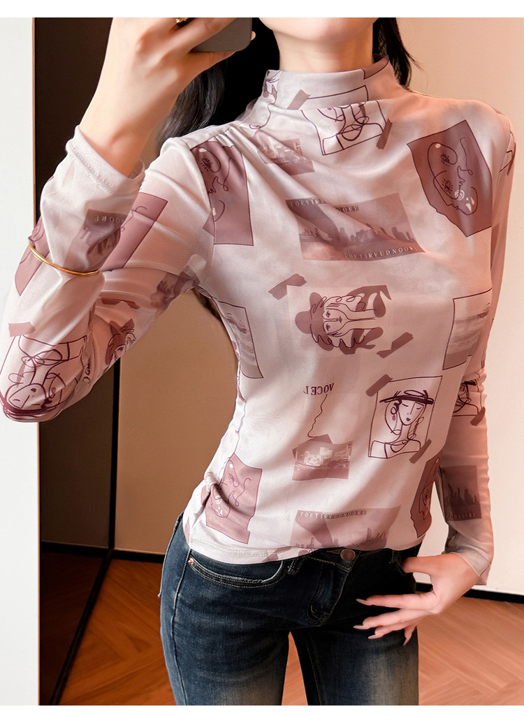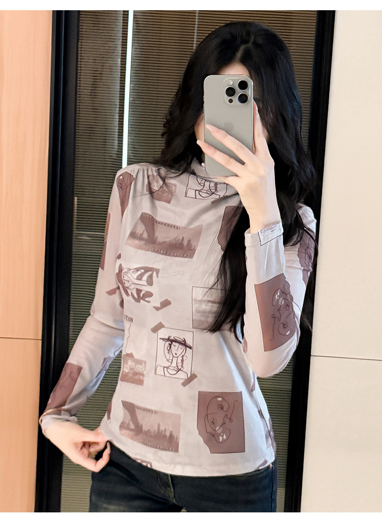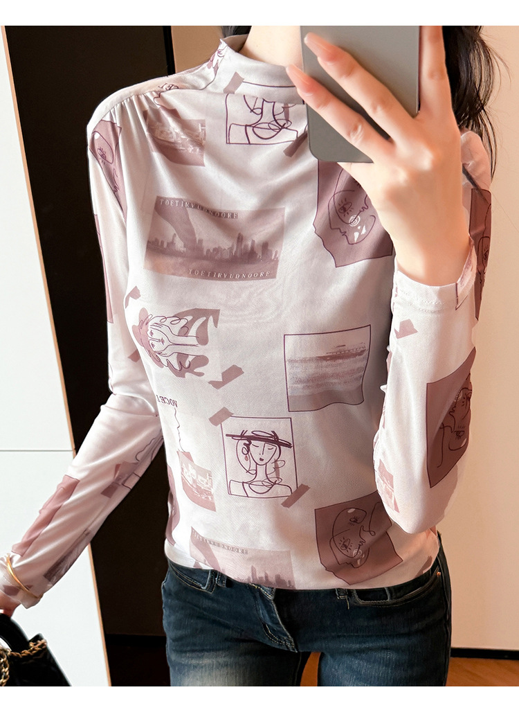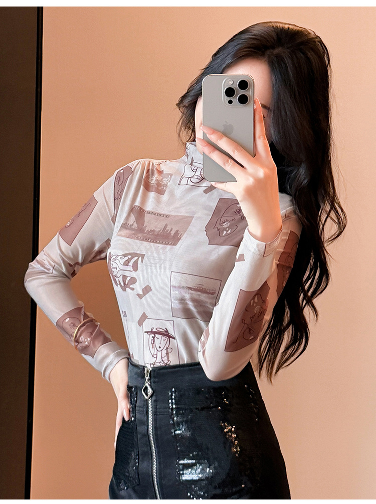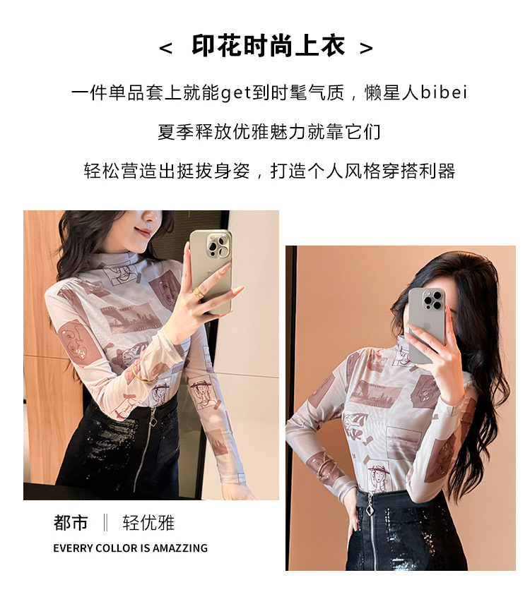 KQLA55F8709 2025新款高端半高领网纱打底衫内搭流行爆款女士纱衣t恤上衣