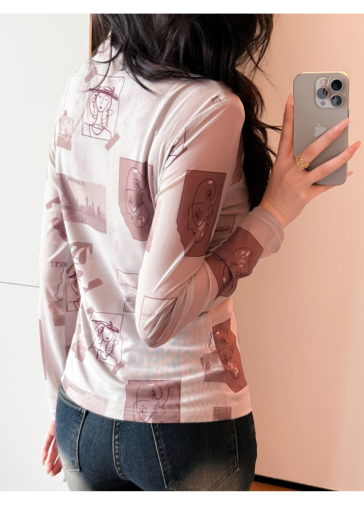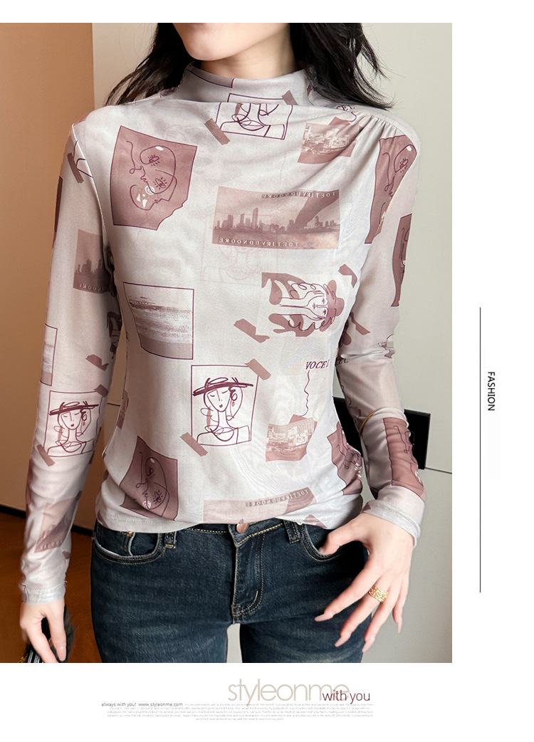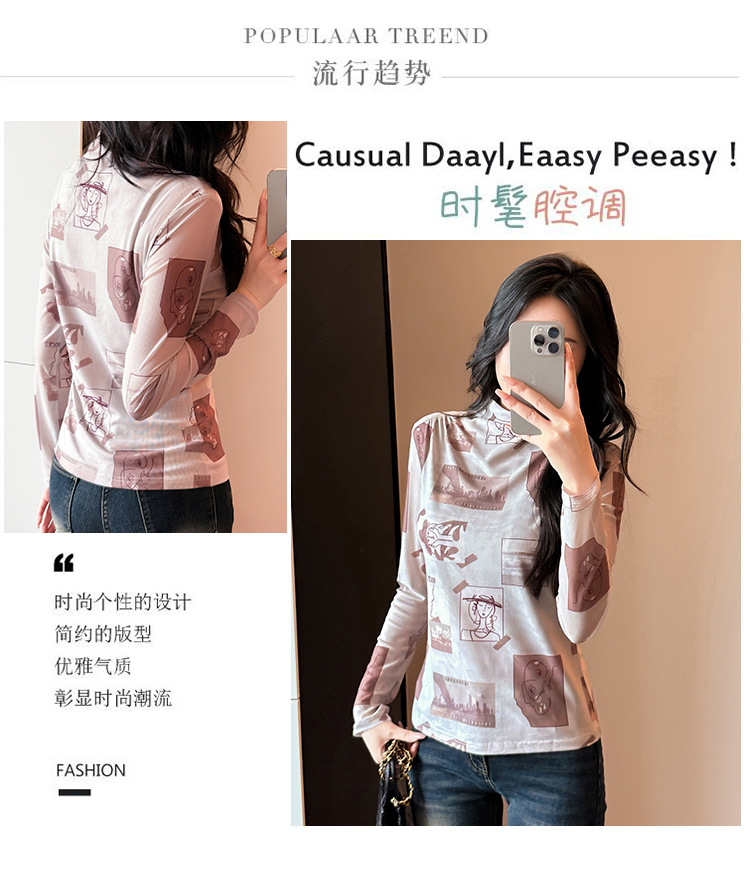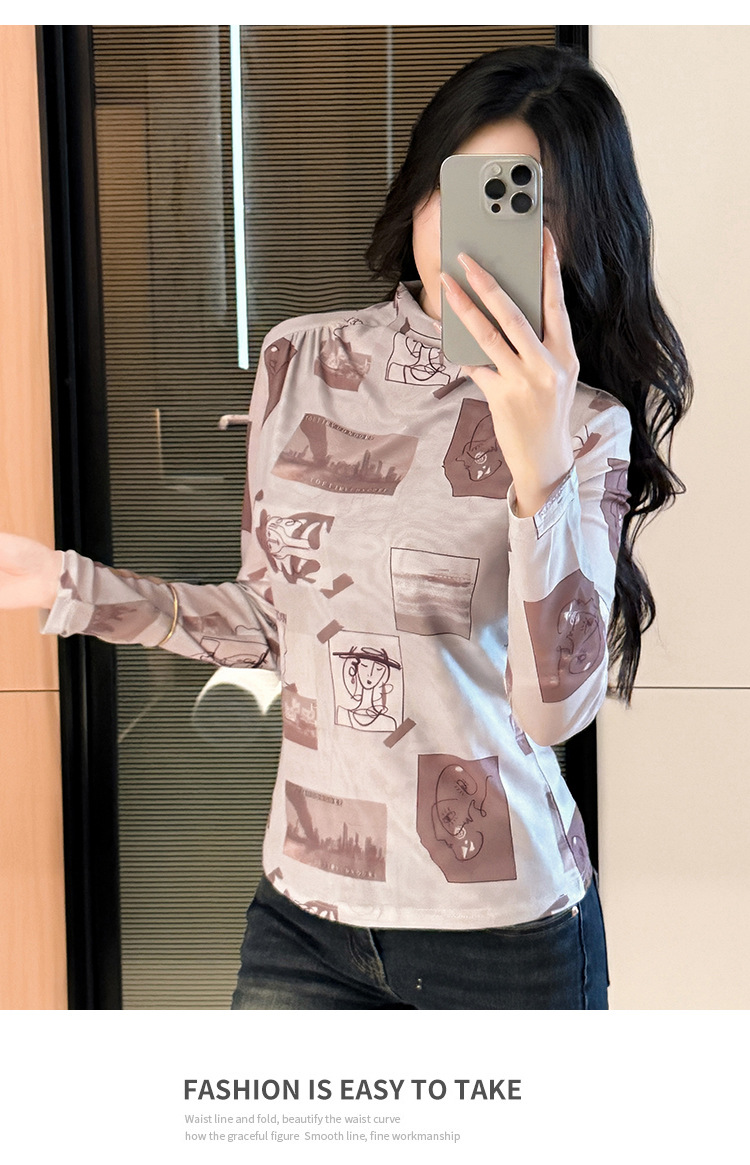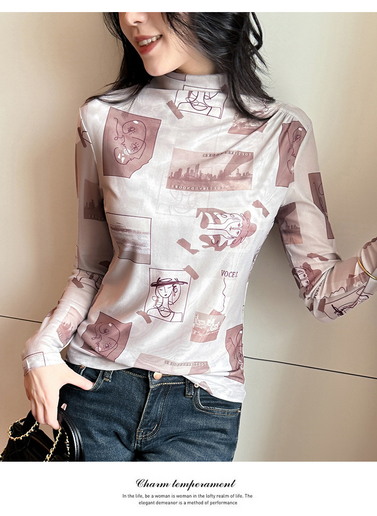 KQLA55F8709 2025新款高端半高领网纱打底衫内搭流行爆款女士纱衣t恤上衣