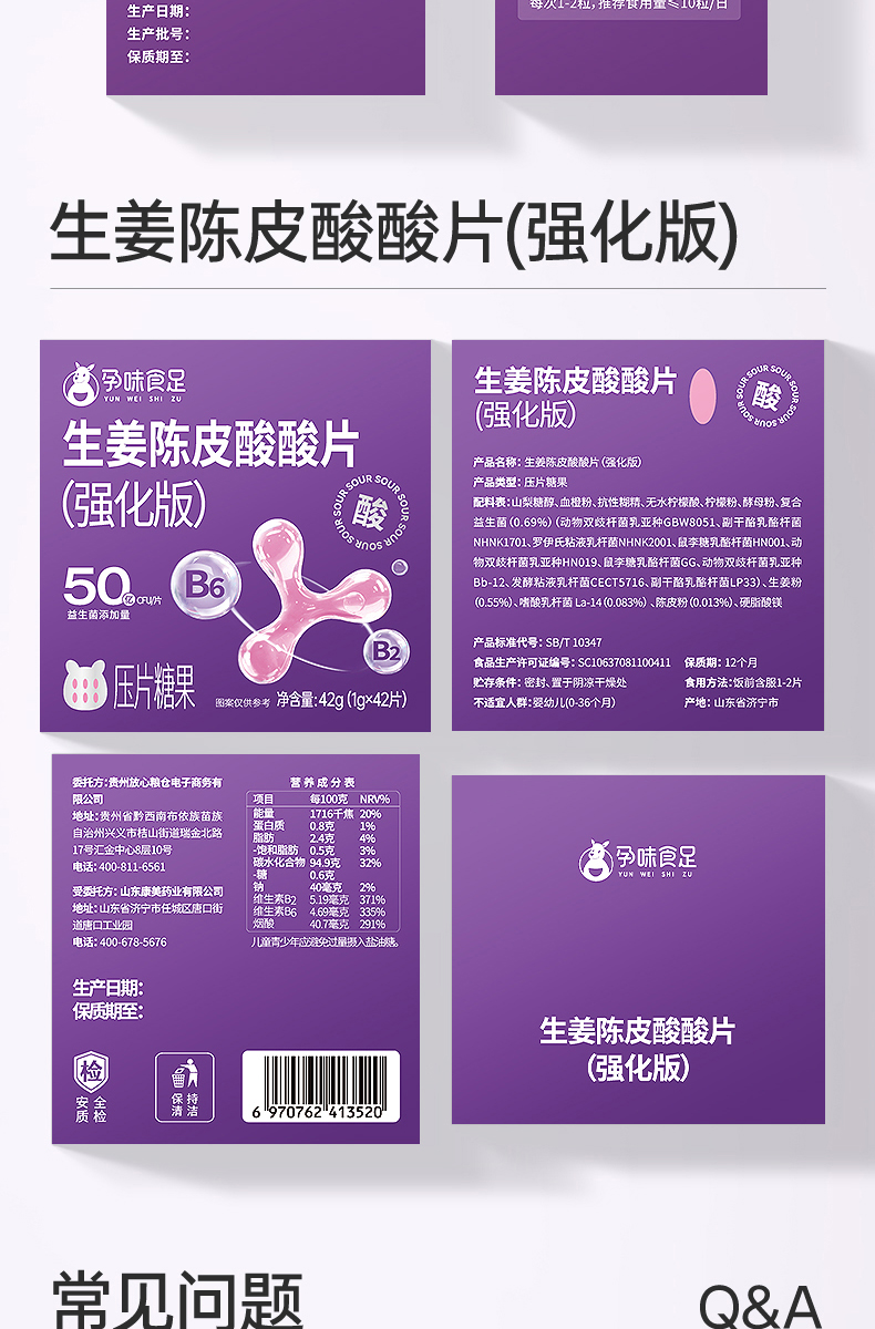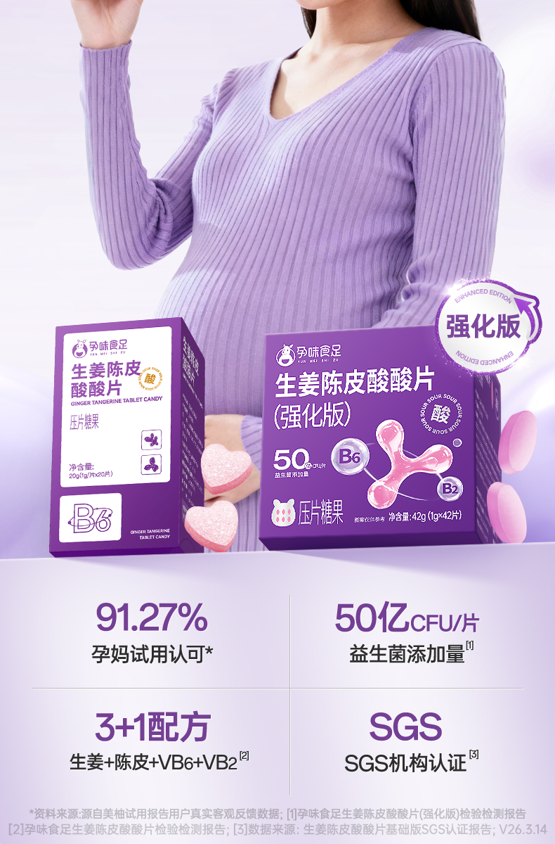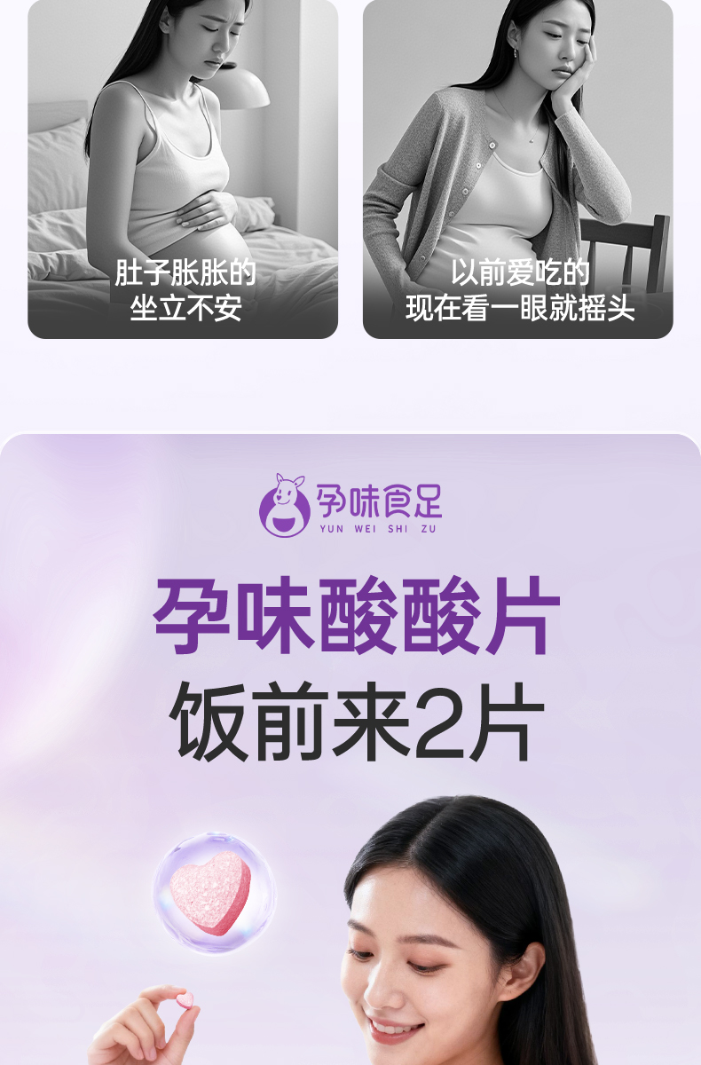 【品牌自营】孕味食足孕味酸酸片孕吐神器缓解止维生素糖孕早期反胃酸孕妇零食