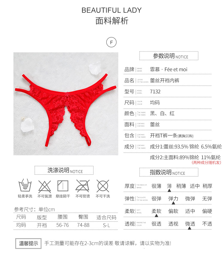 【开裆内裤】霏慕蕾丝花边开裆女士内裤升级版7132【 黑色】
