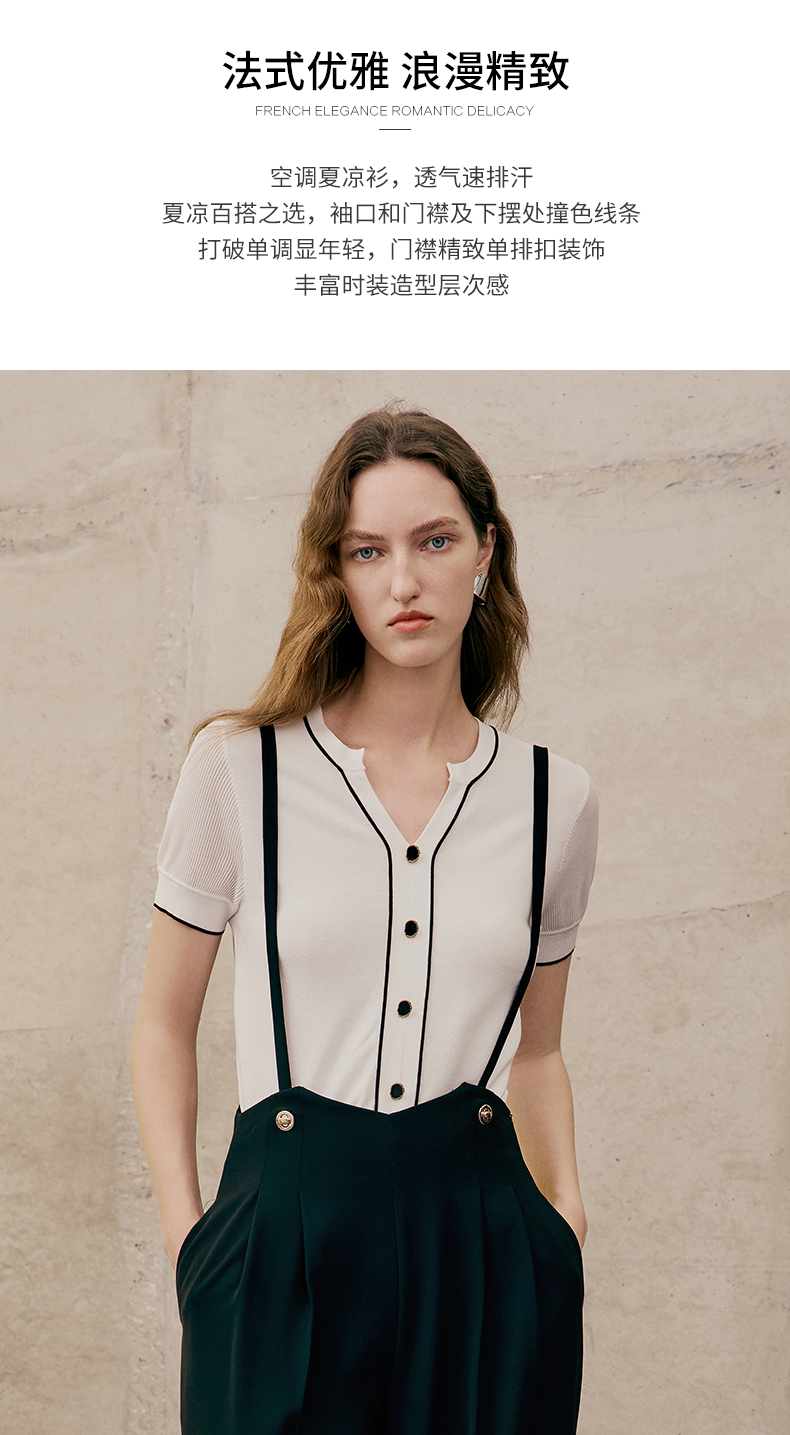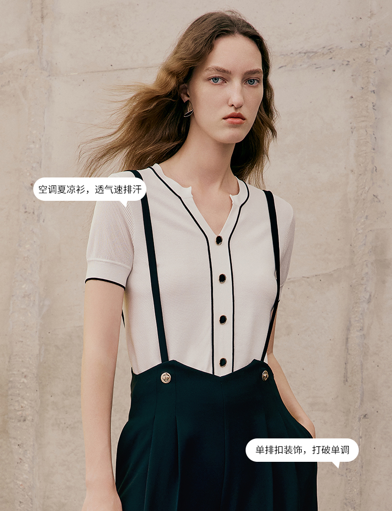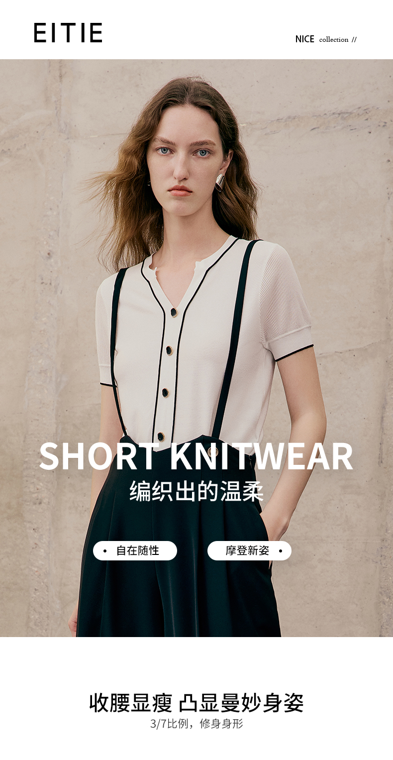 EITIE爱特爱夏季新款V领显瘦干练针织衫7401102