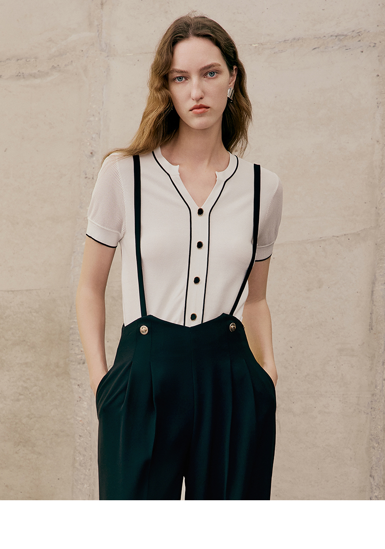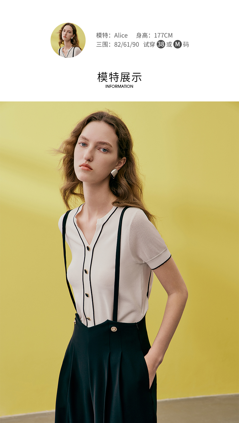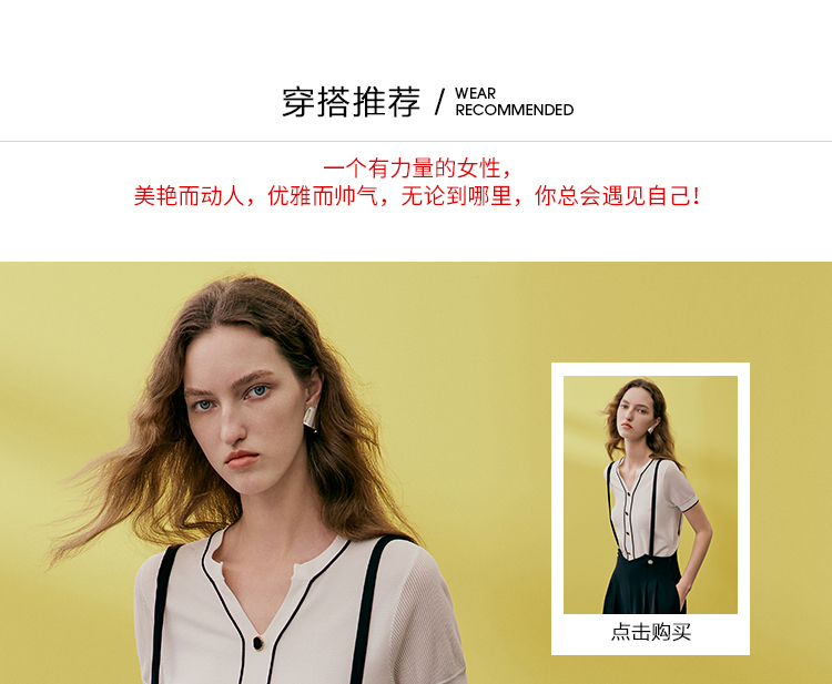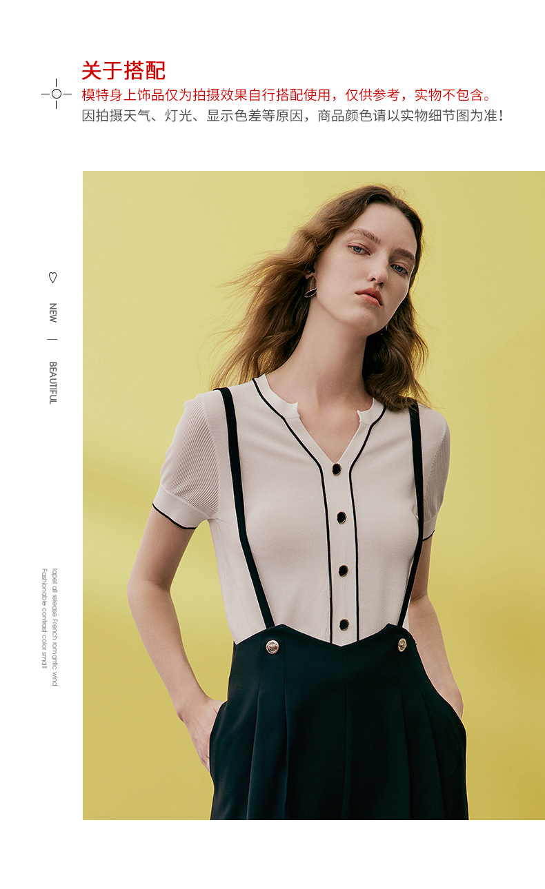 EITIE爱特爱夏季新款V领显瘦干练针织衫7401102