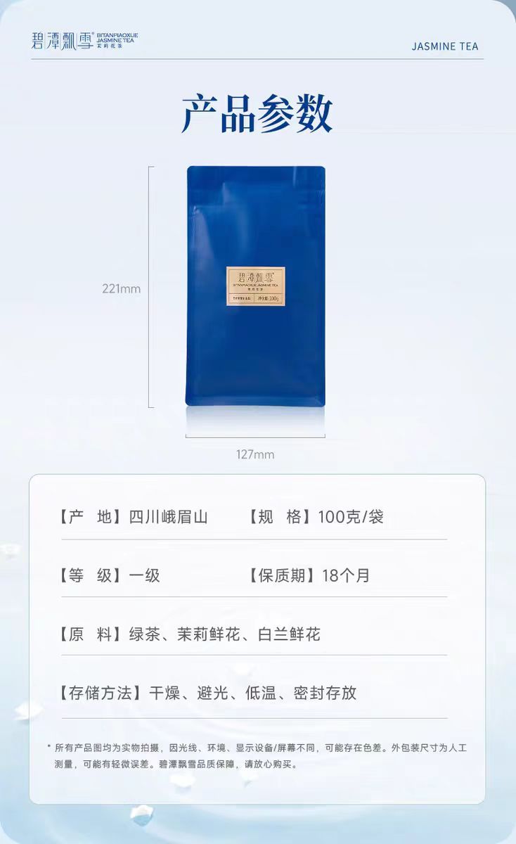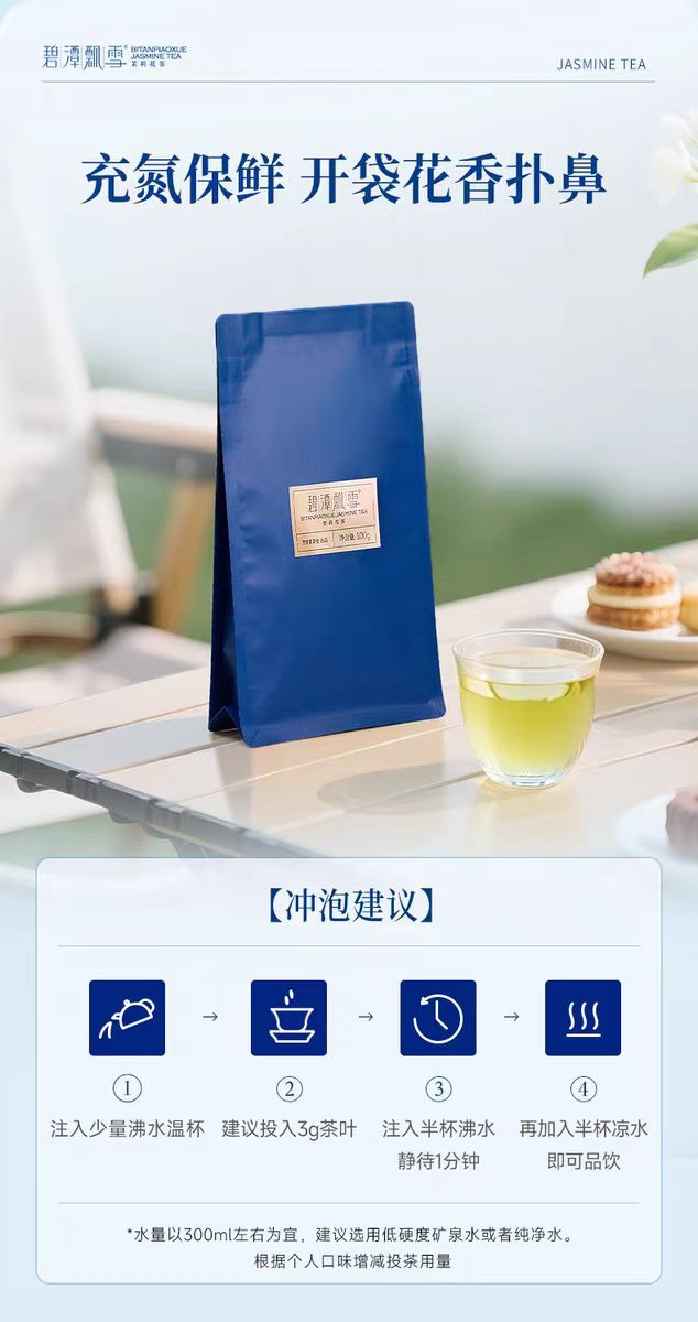 竹叶青碧潭飘雪茉莉花茶100g