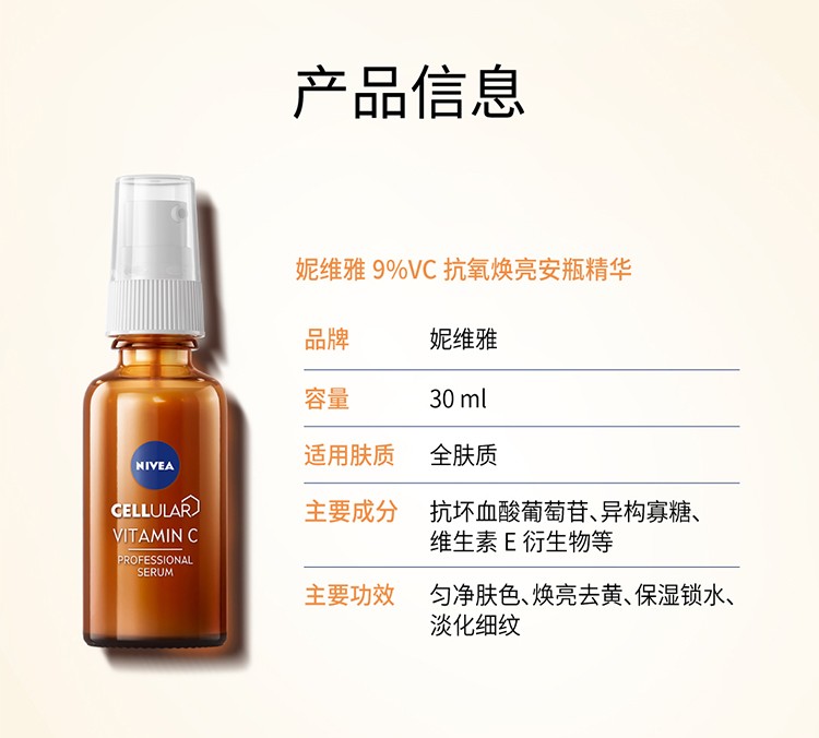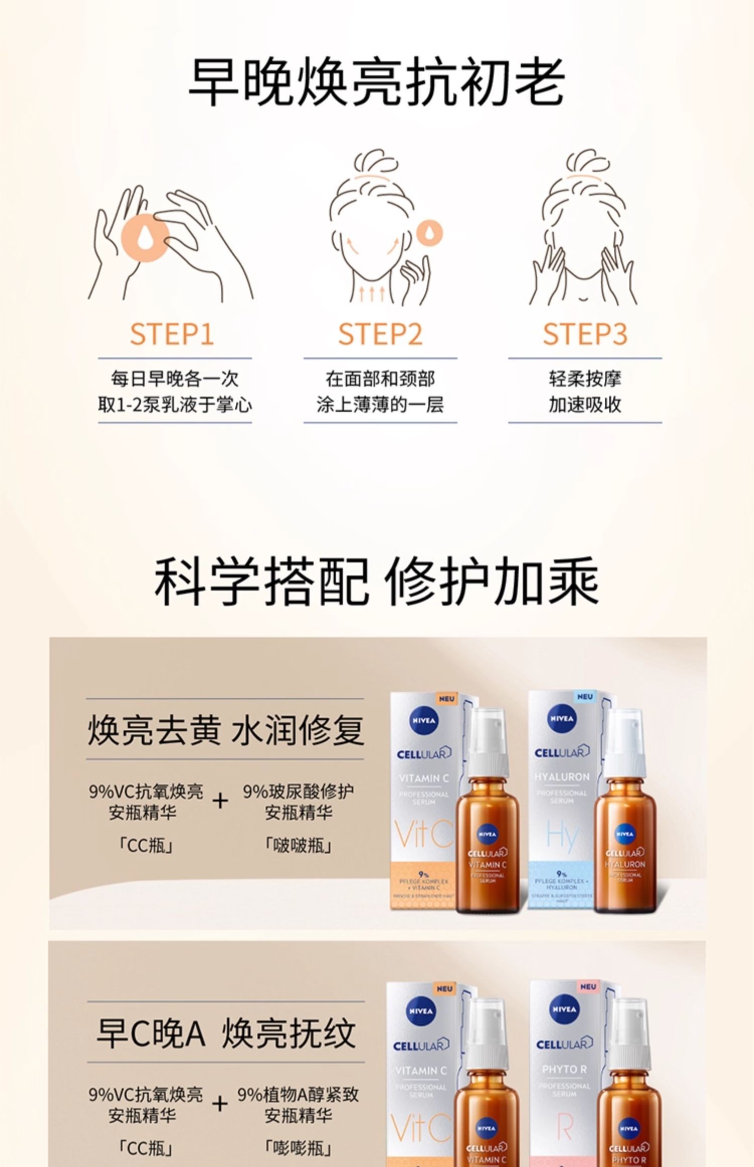 【保税仓直发】Nivea妮维雅早C晚A CELLULAR 9%VC焕亮安瓶精华30ml/9%植物A醇紧致安瓶精华30ml(效期26年7月至10月随机)