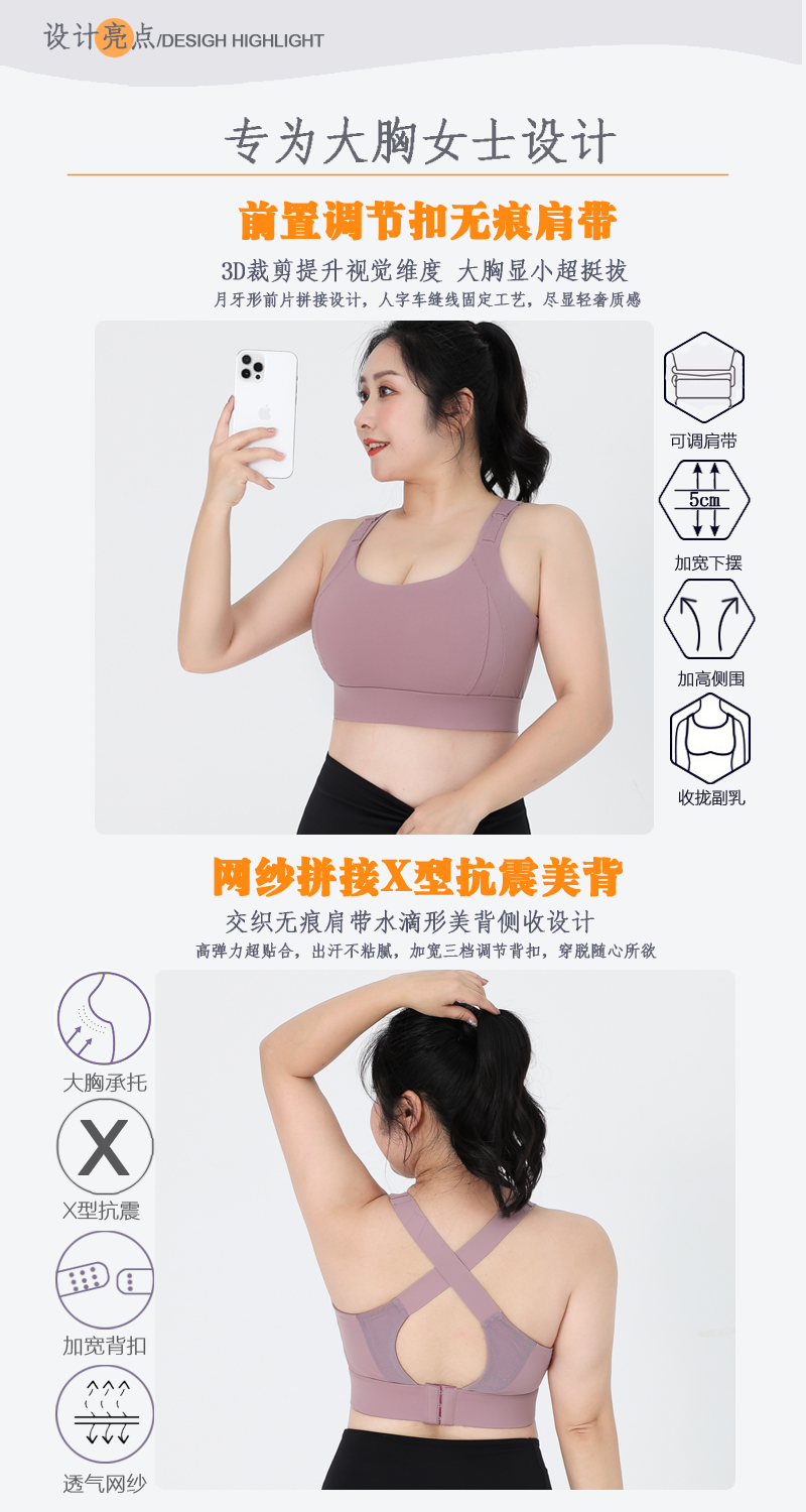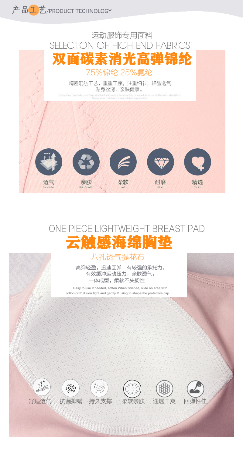 跃牌(呗咪纷纷系列)后搭扣美背防震聚拢运动背心文胸 一体杯WX029