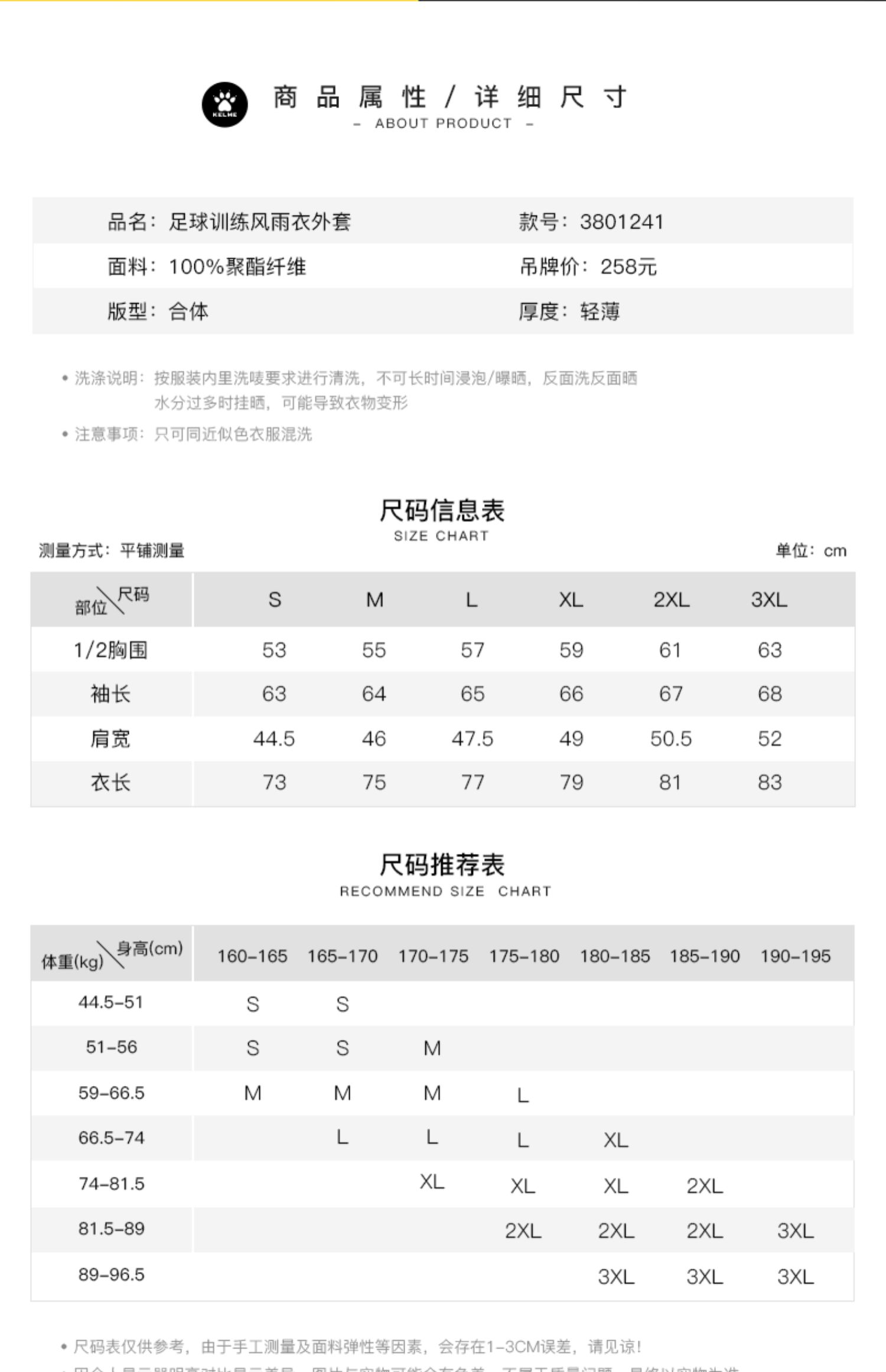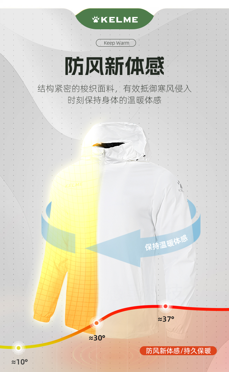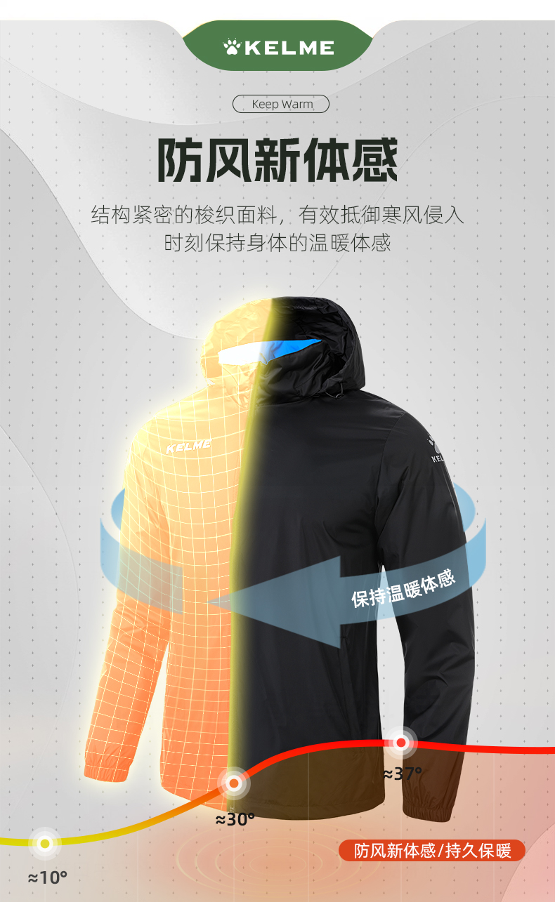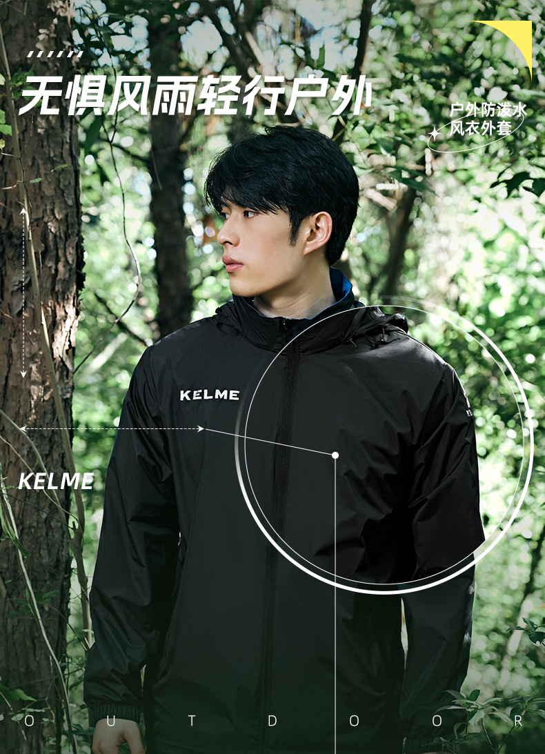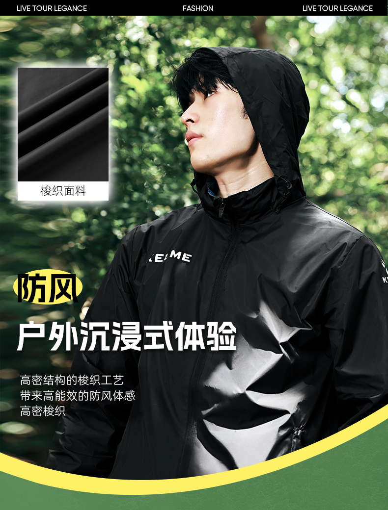 卡尔美官网足球训练运动风衣男防风雨户外跑步健身外套