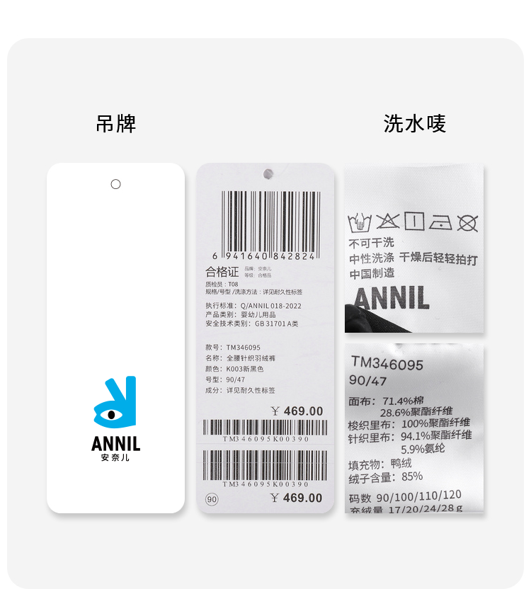 男童女童羽绒裤新款冬宝宝加绒保暖夹棉拼接长裤子安奈儿童装TM346095