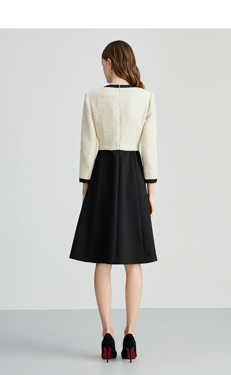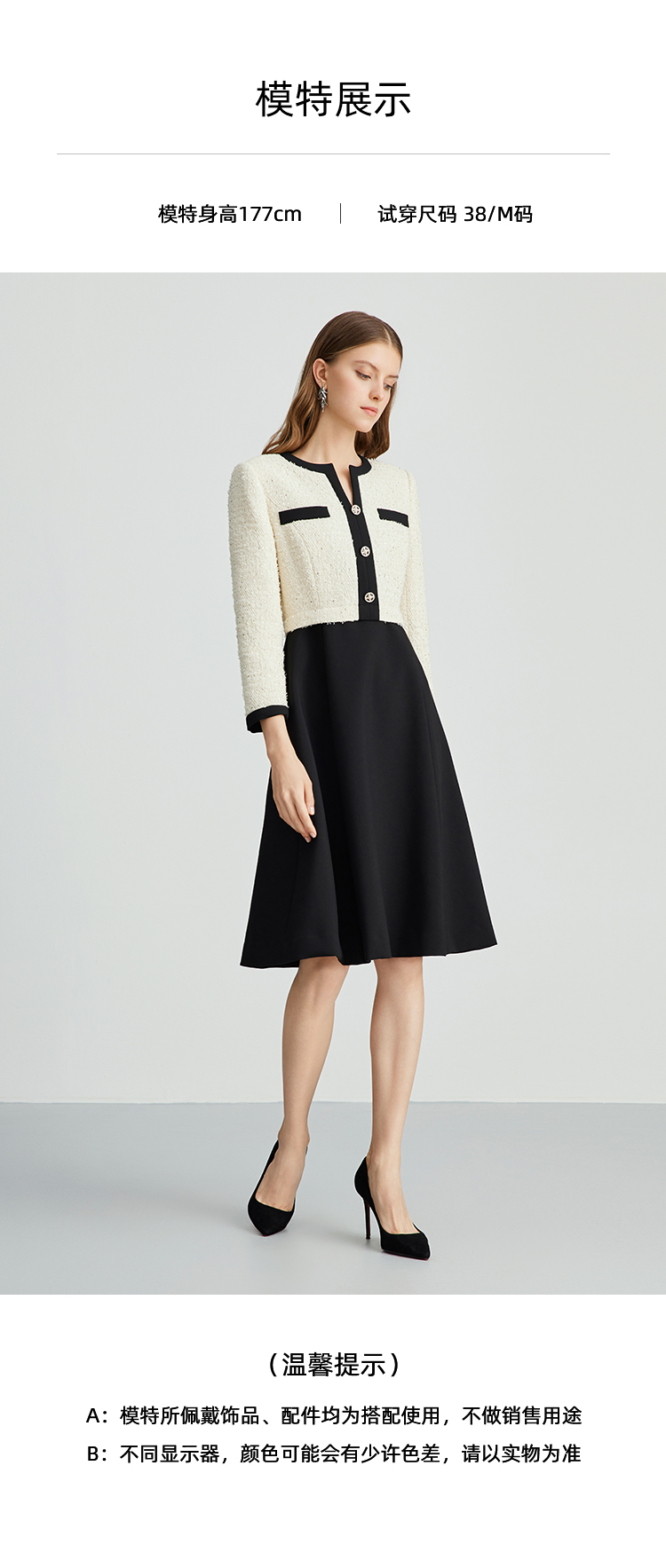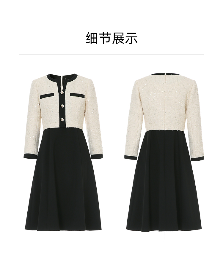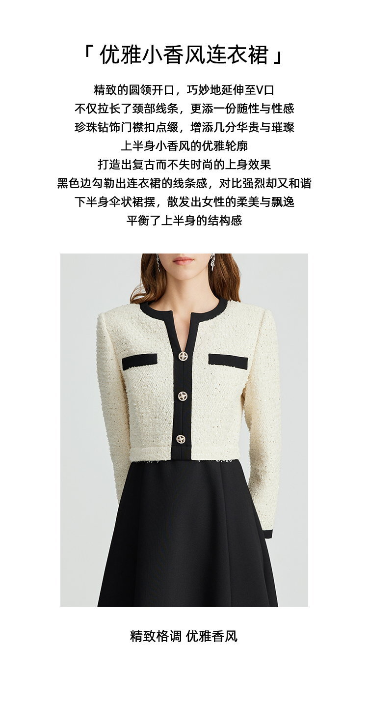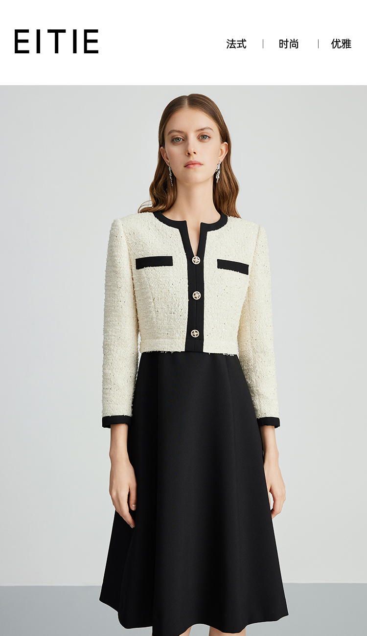 EITIE爱特爱气质优雅撞色拼接通勤显瘦小香风A字连衣裙秋新款D2407403