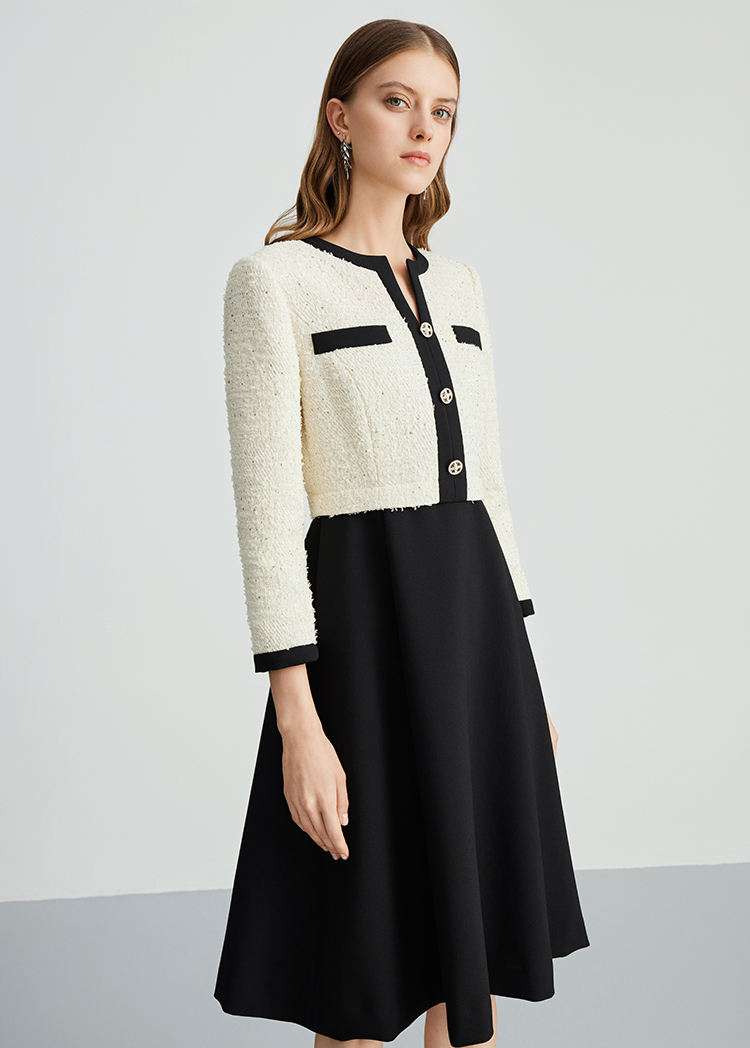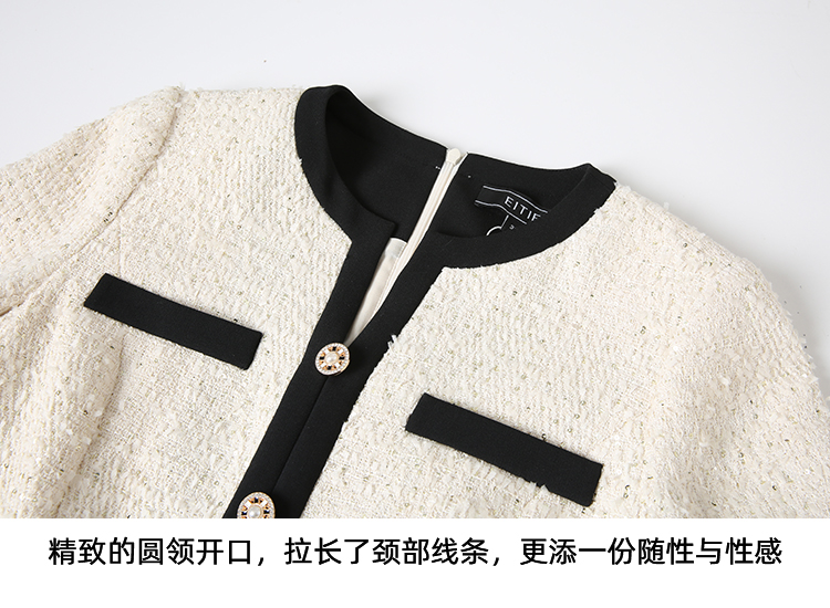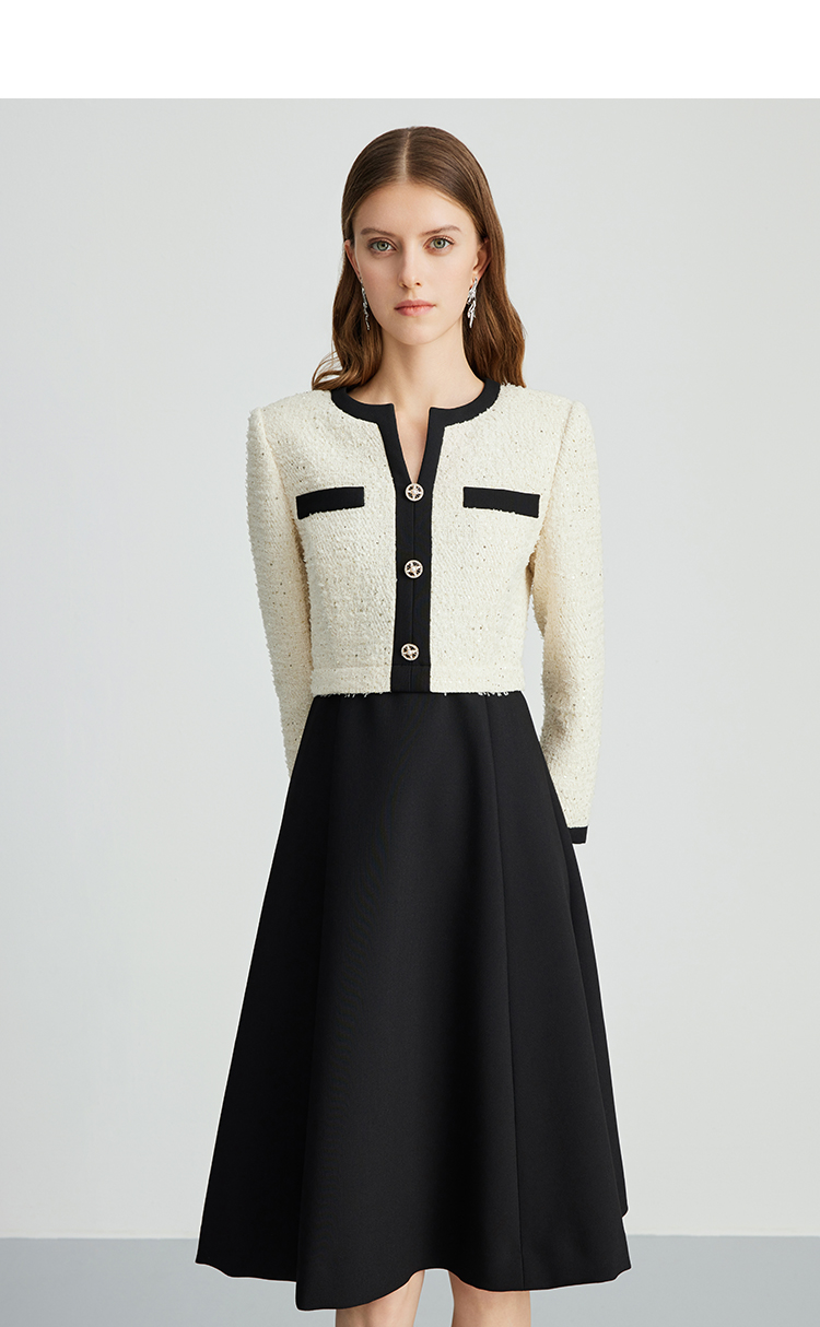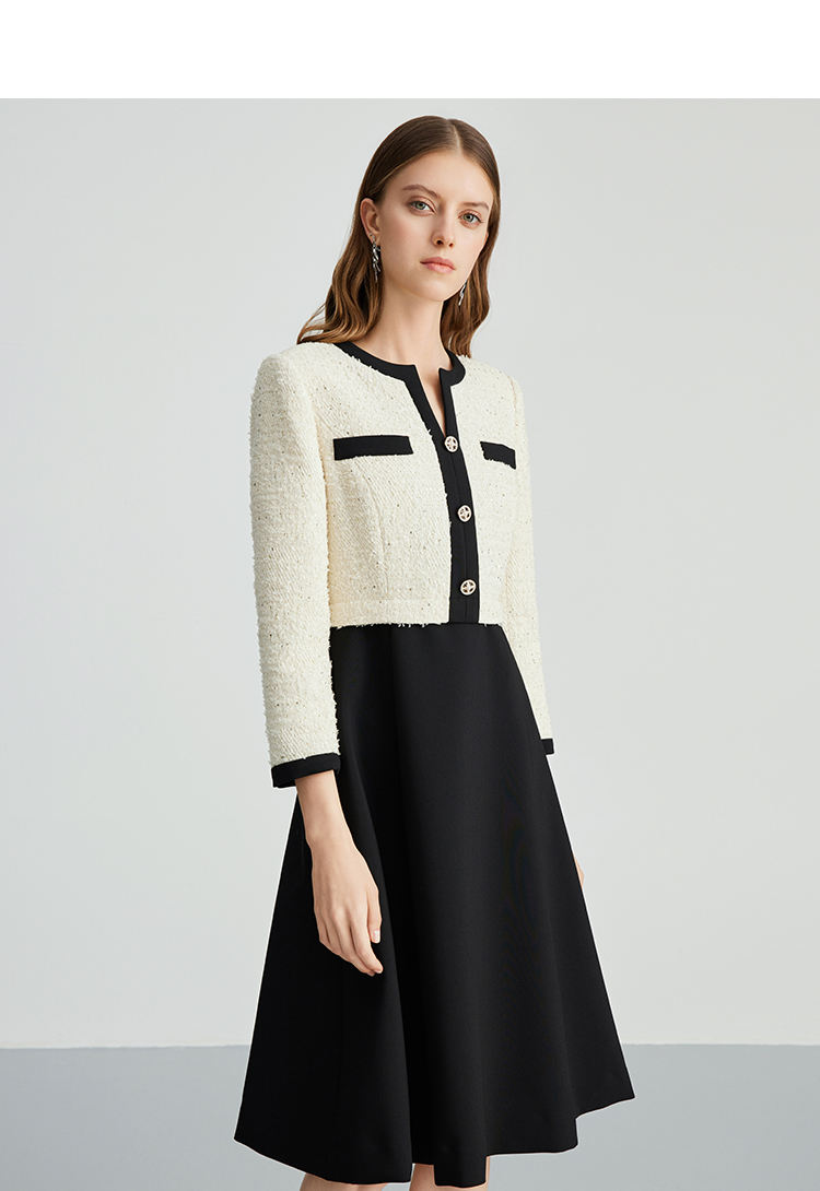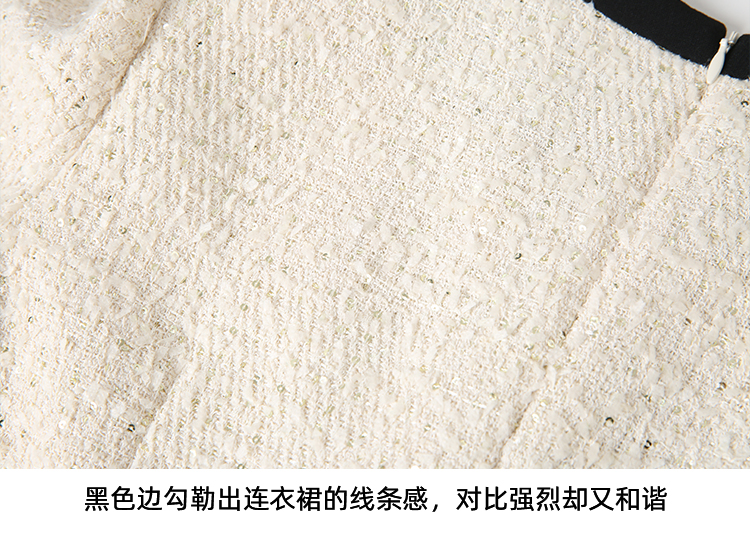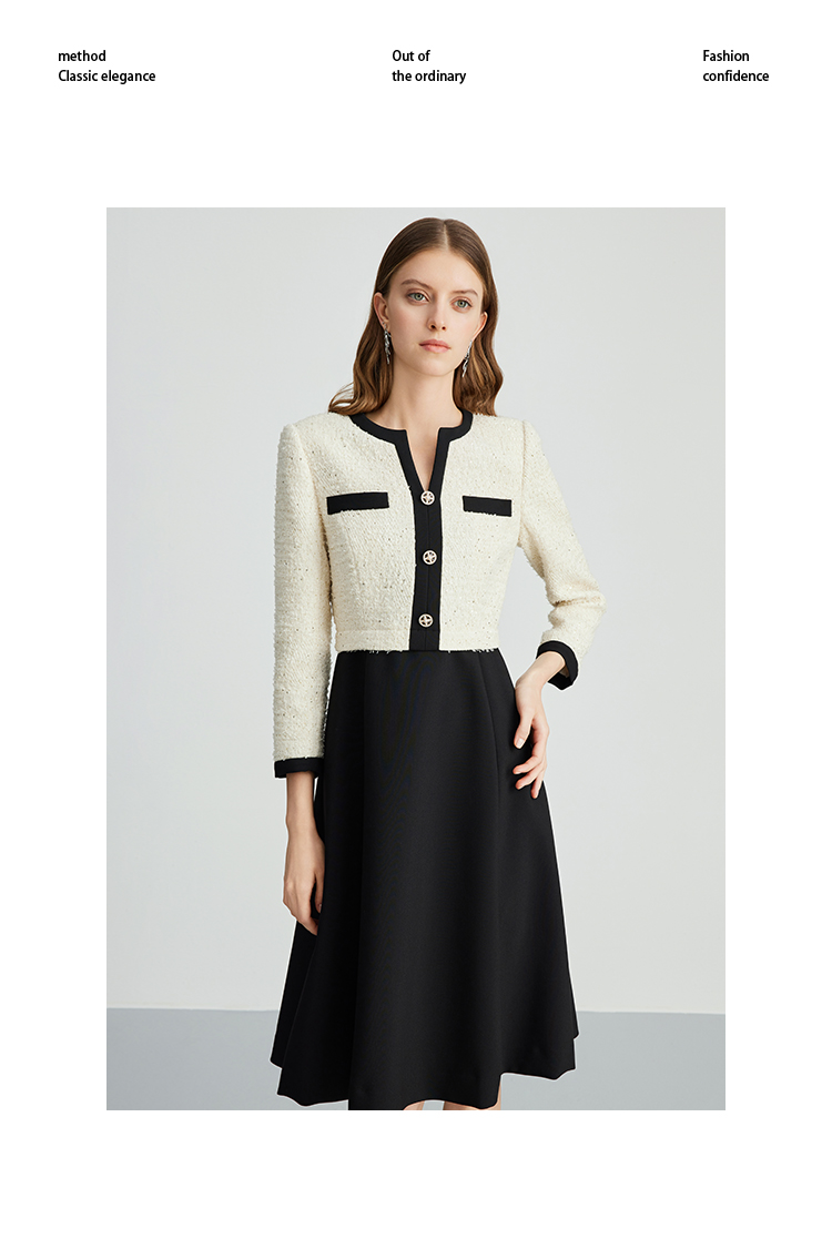 EITIE爱特爱气质优雅撞色拼接通勤显瘦小香风A字连衣裙秋新款D2407403