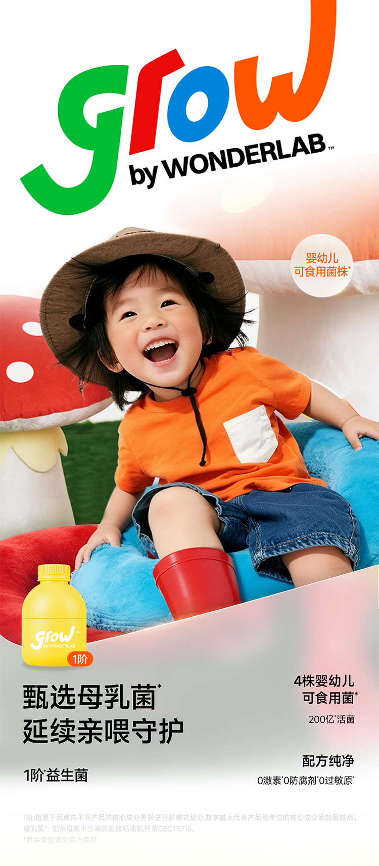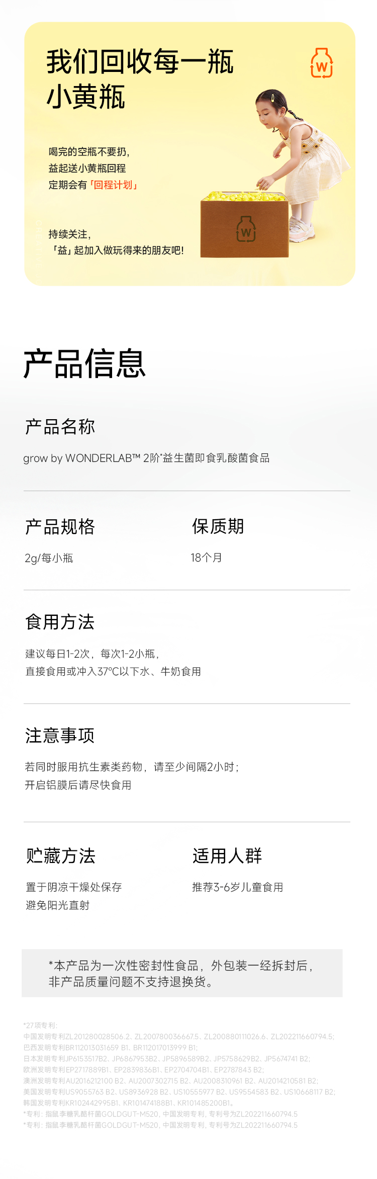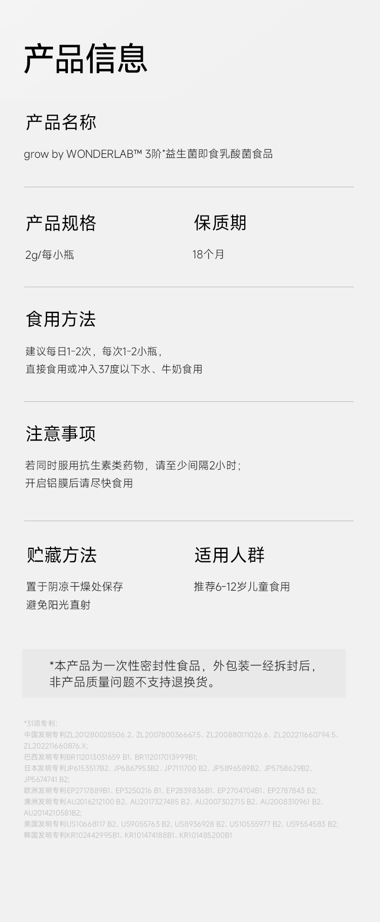 万益蓝 grow by WONDERLAB_益生菌即食乳酸菌食品 甄选母乳菌延续亲喂好肠道 三重自护升级入园妈妈安心 抓住成长黄金期赢在吸收起跑线