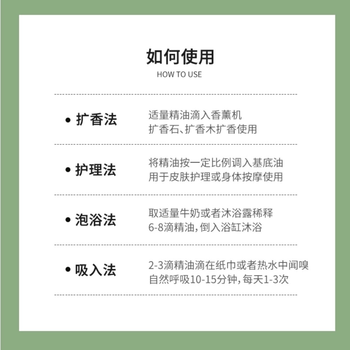 本精油源自天然植物,会因植物生长地海拔、气候、萃取方式等因素产生轻微的成分与气味变化,导致感官存在细微差异,不影响产品品质。