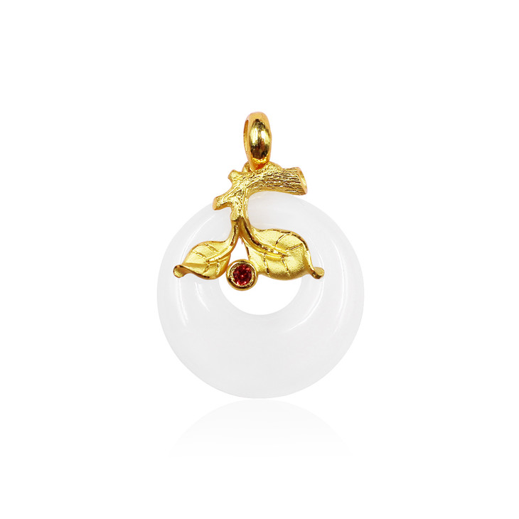 足金镶嵌和田玉(白玉)吊坠