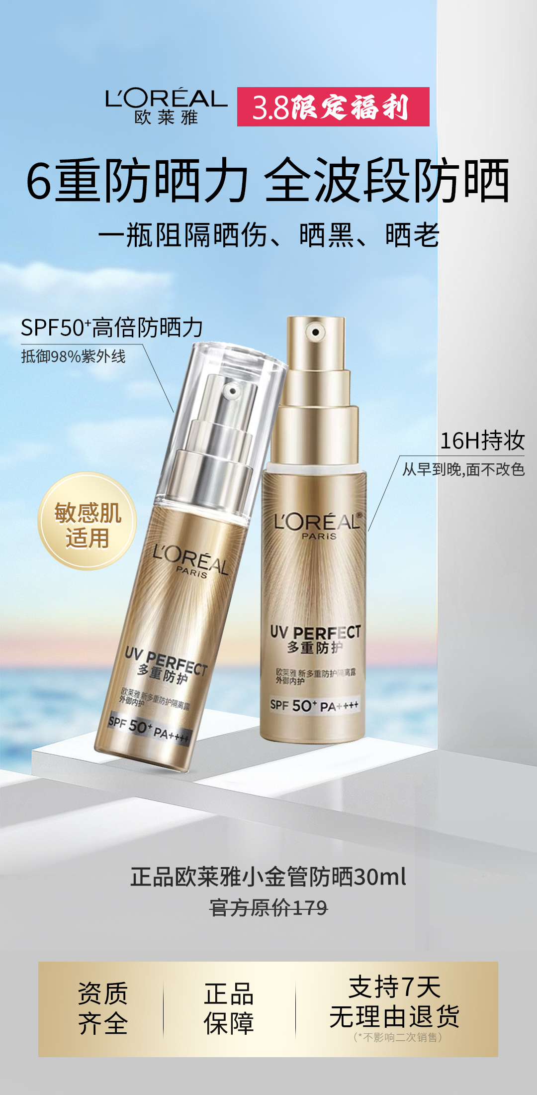 【品名】【美妆】限量!欧莱雅小金管防晒
