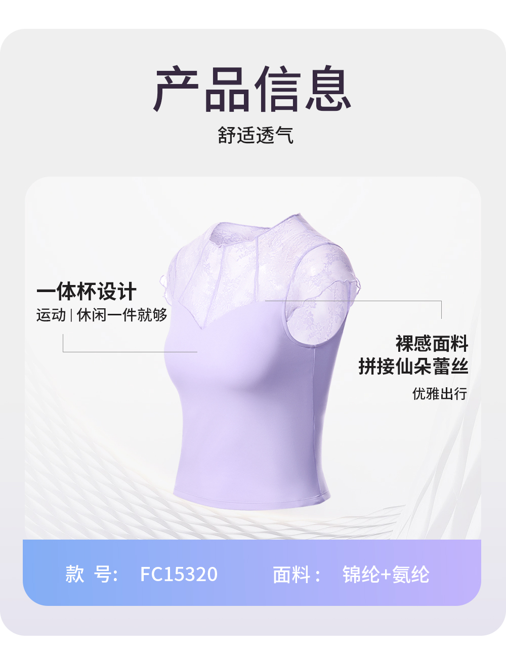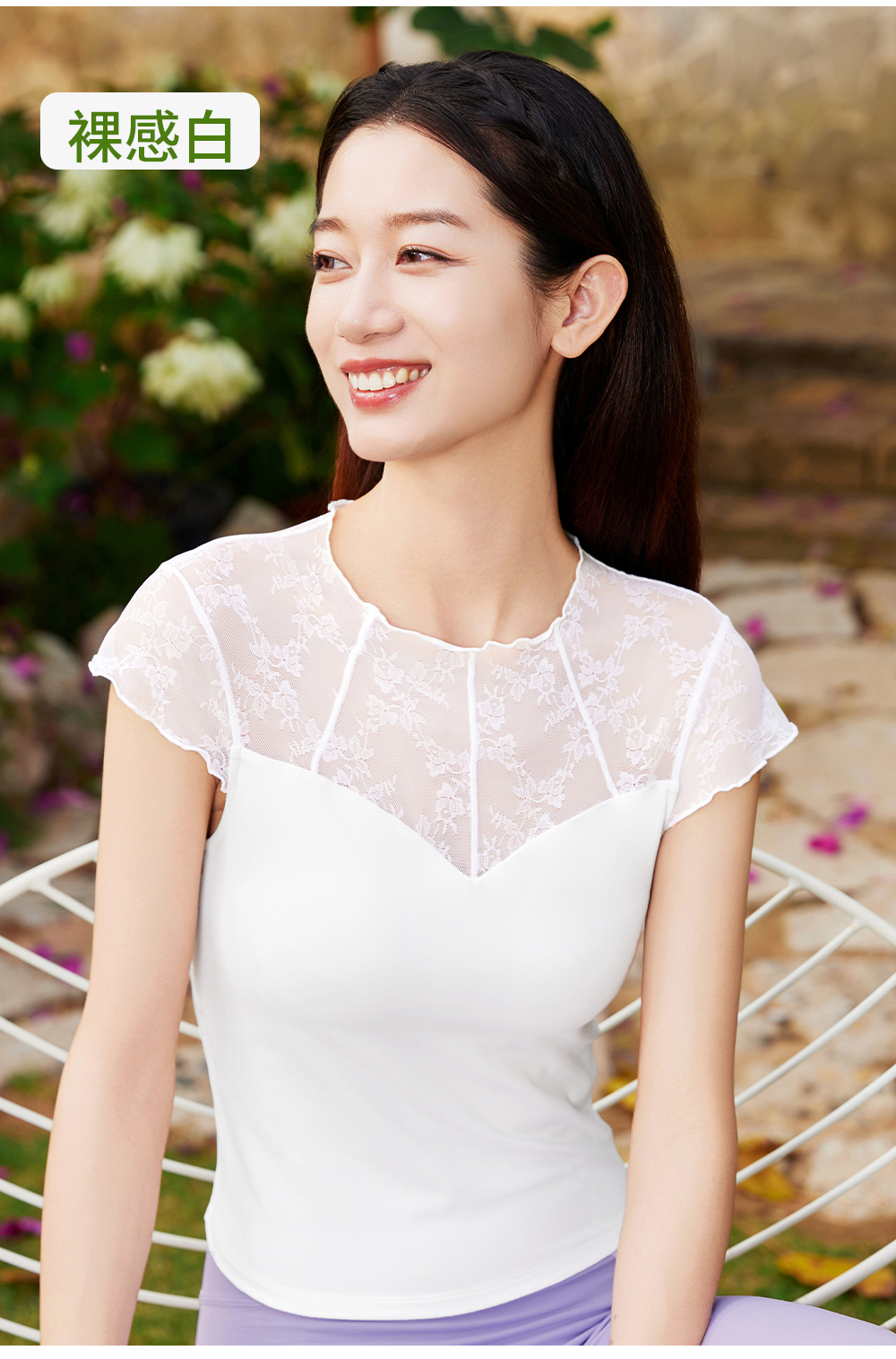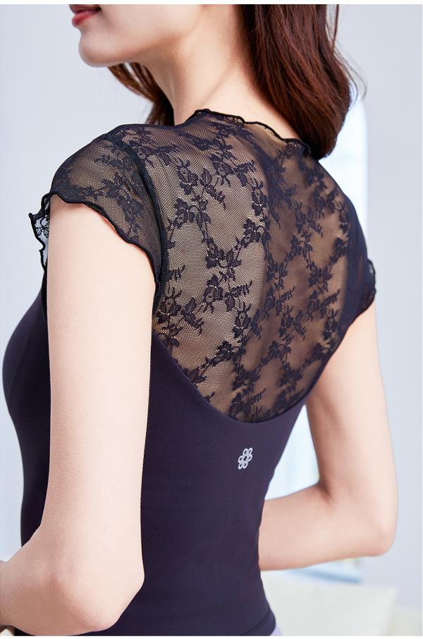凡圣瑜伽木耳边蕾丝拼接短袖 FC15320