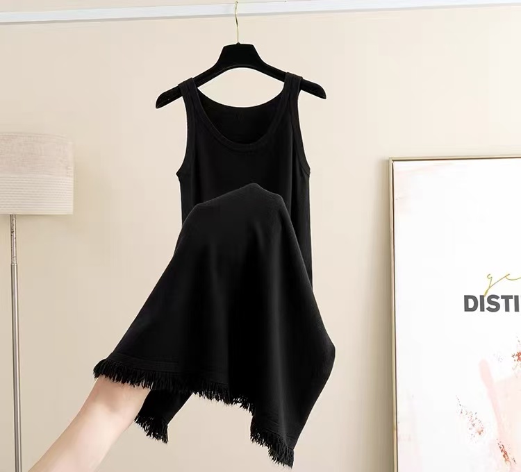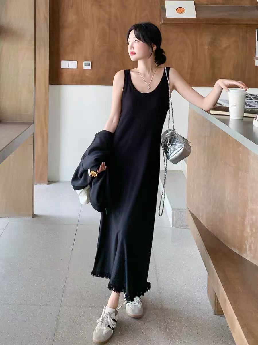 活动爆款【自营】衣周期~103超软糯流苏下摆长款背心连衣裙-喜出