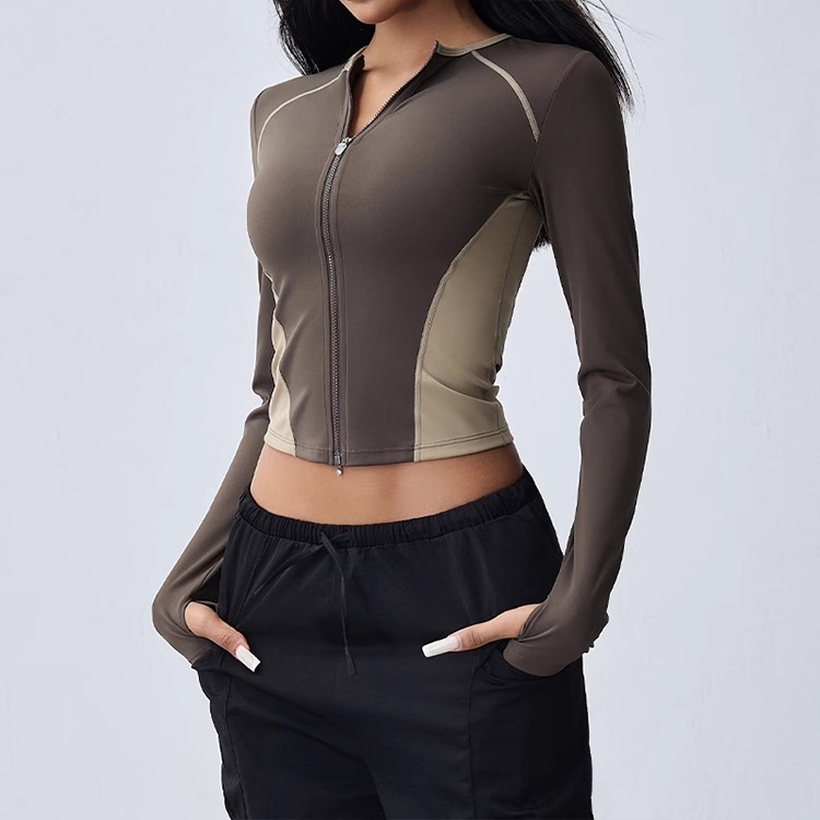 跃牌【禅语梵心】撞色运动外套修身显瘦圆领拉链健身服上衣WT4709