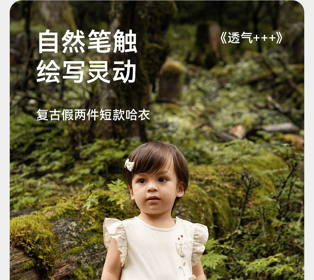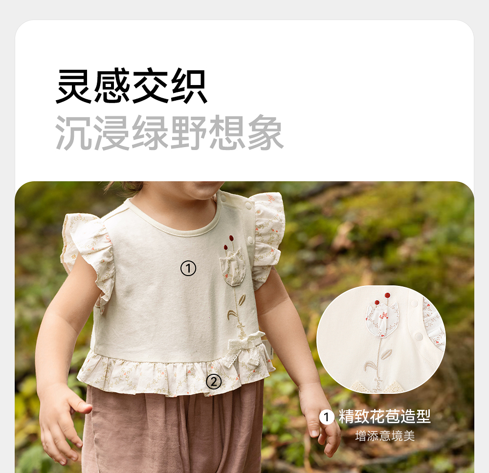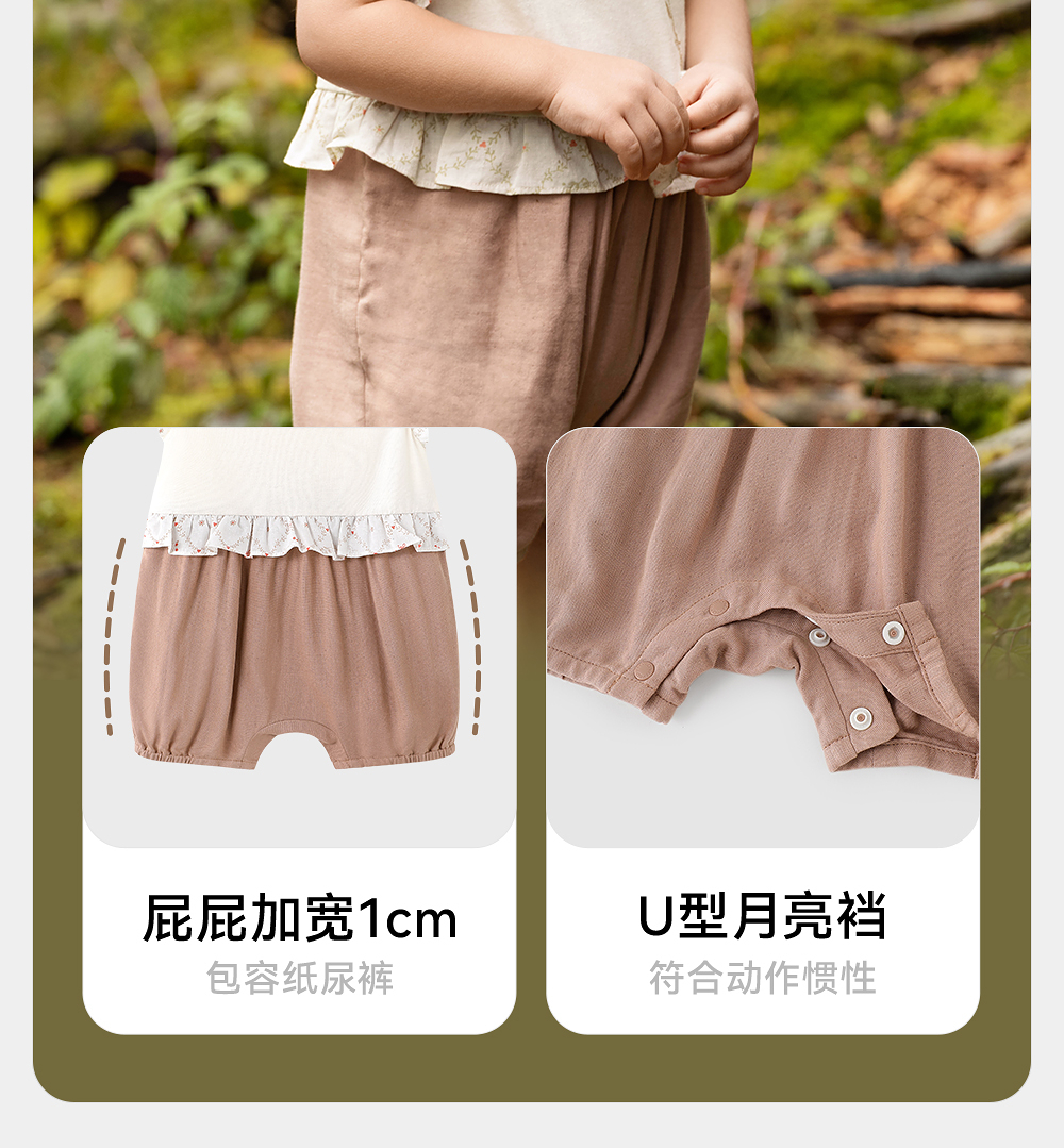 【商场同款】英氏婴儿衣服夏季轻薄亚麻透气女童连体衣月亮裆爬服