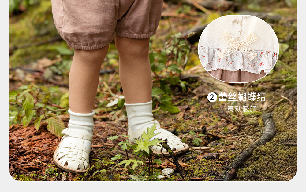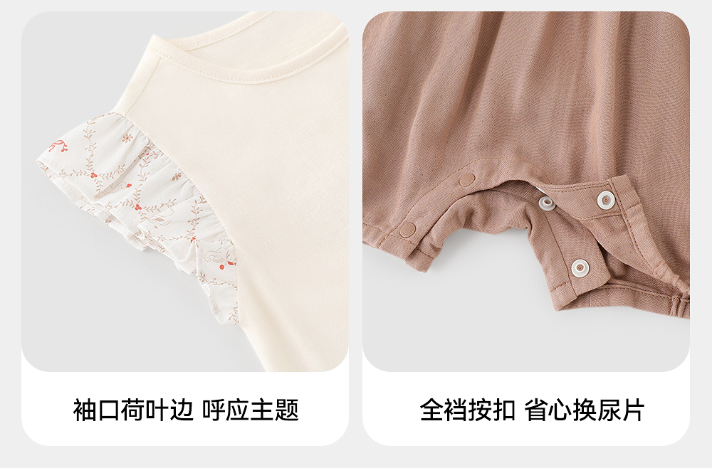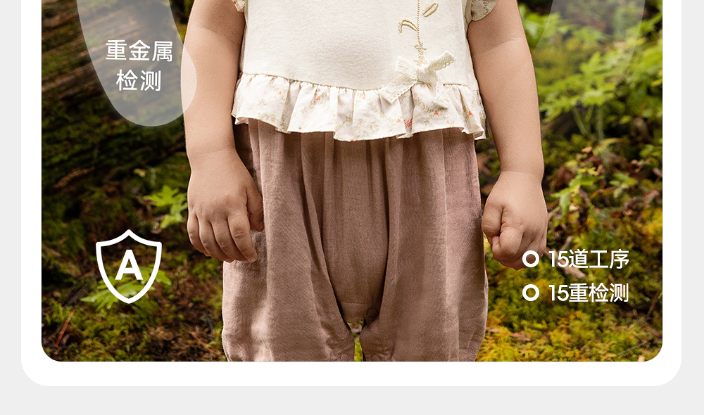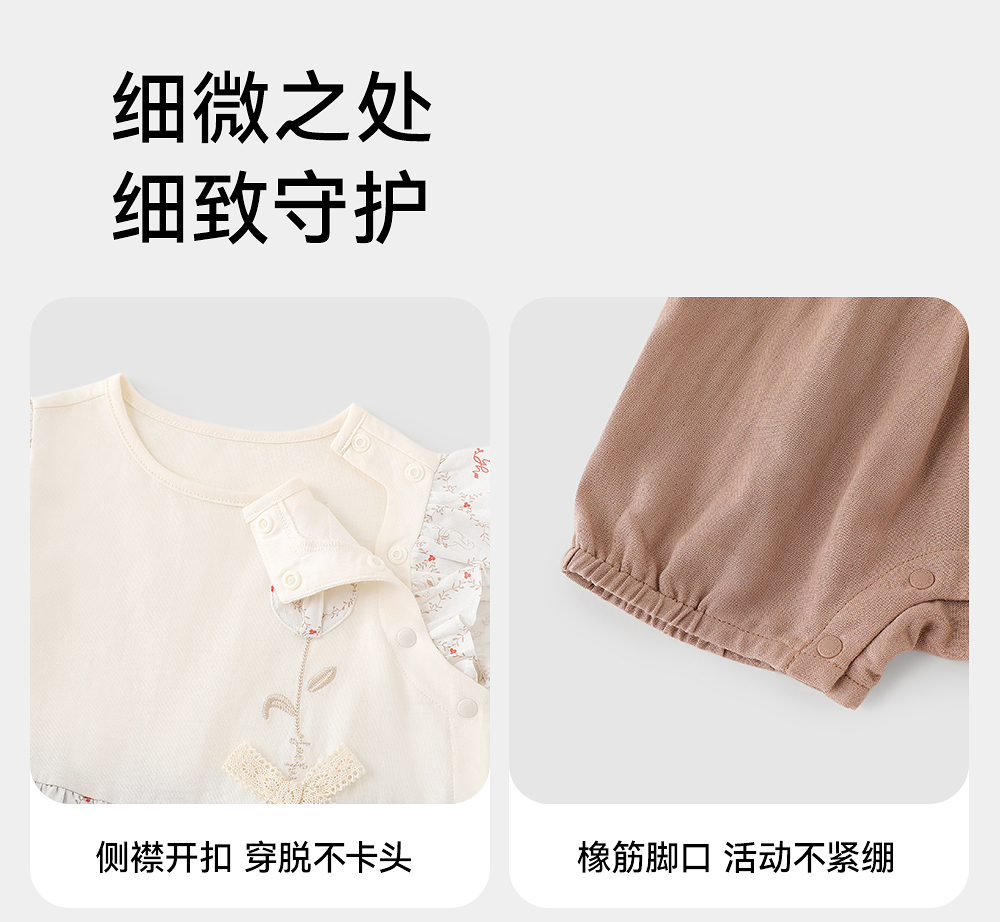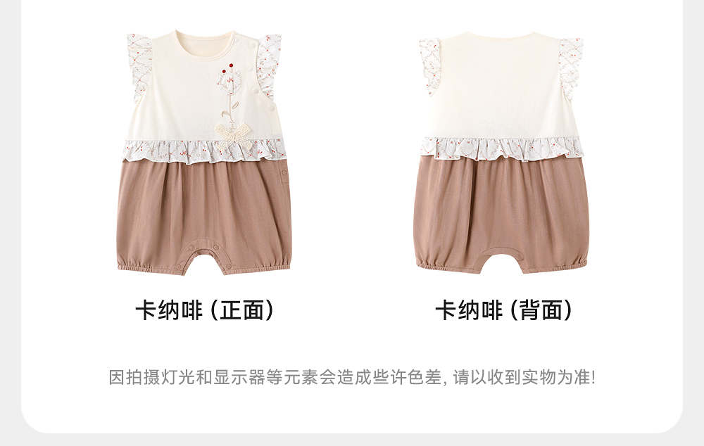 【商场同款】英氏婴儿衣服夏季轻薄亚麻透气女童连体衣月亮裆爬服