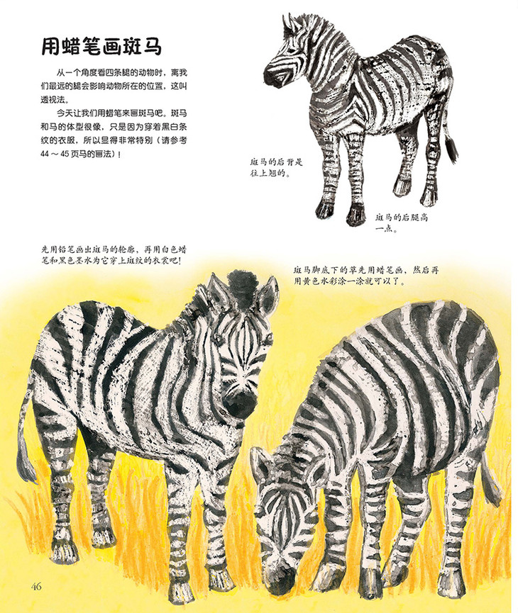 这是一本充满创意新点子的动物绘画书。粉笔画猩猩,铅笔画奶牛,蜡笔画斑马,水墨画熊猫,水彩画长颈鹿,丙烯颜料画老虎,电脑画飞鸟、骆驼、企鹅……不同的画笔、不同的纸张、不同的动物,不同的动物,不同的动作、不同的神态、不同的角度……步骤分明,简单易懂,容易操作!