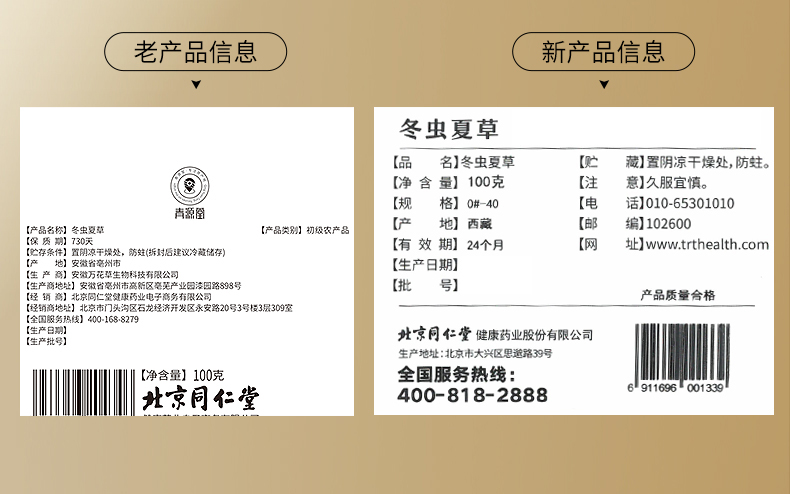 【正宗同仁堂品牌】北京同仁堂 青源堂 冬虫夏草4条/克 100克 礼盒 无断草 足干品质 三次刷洗 洁净入口SY