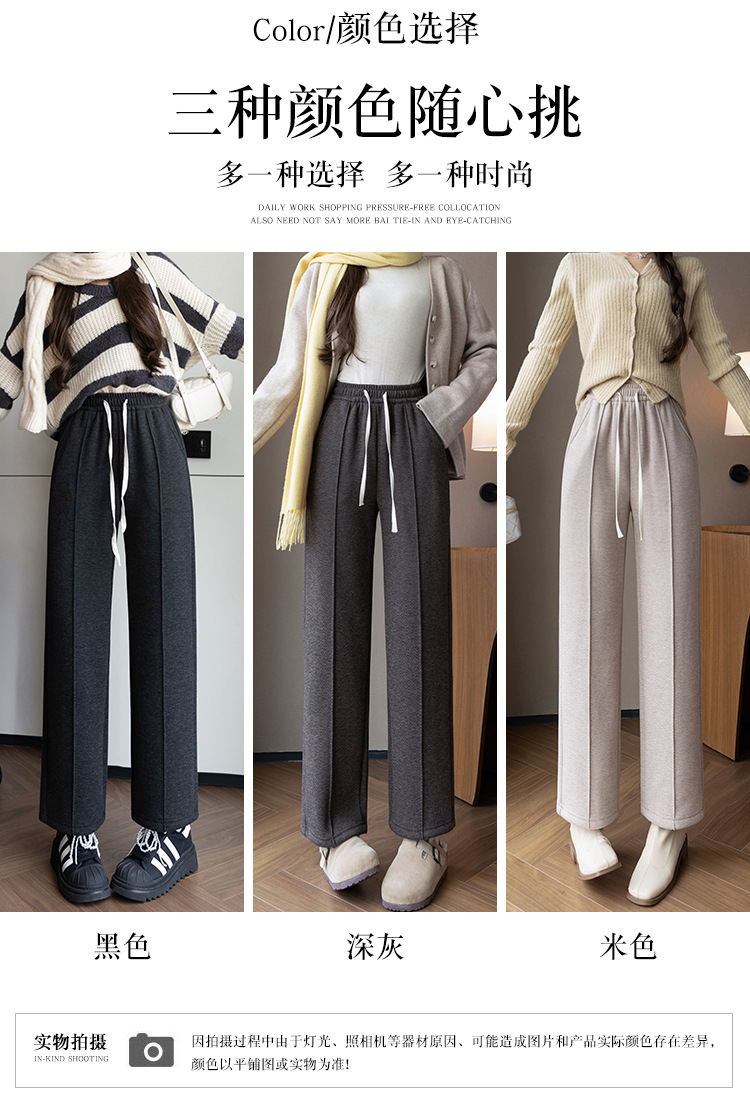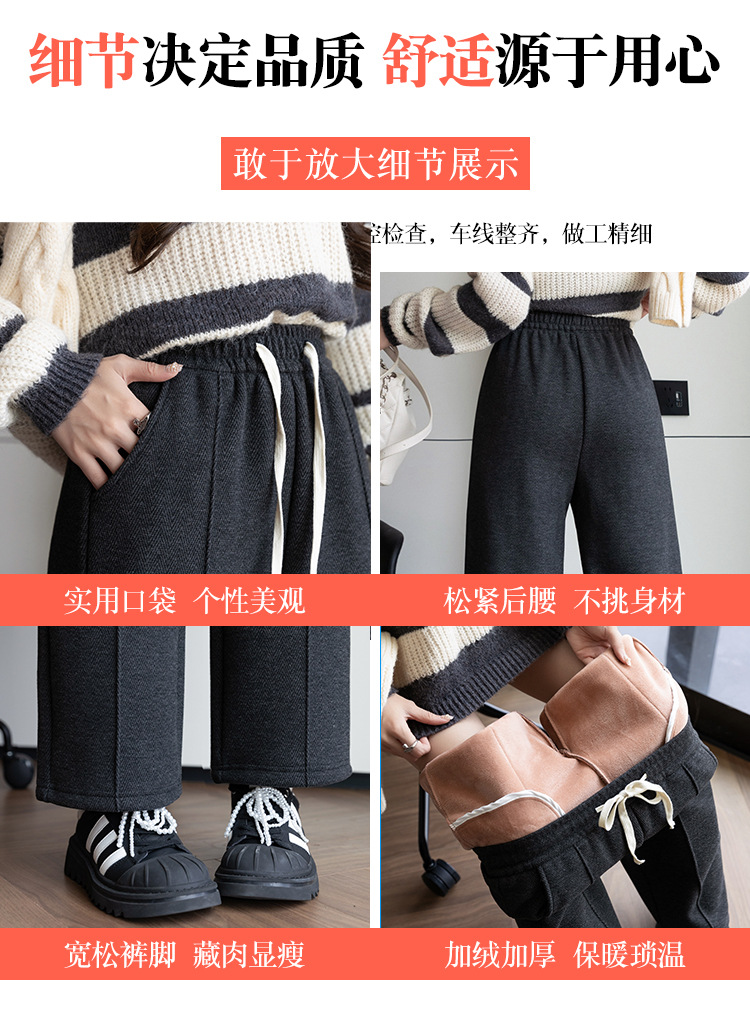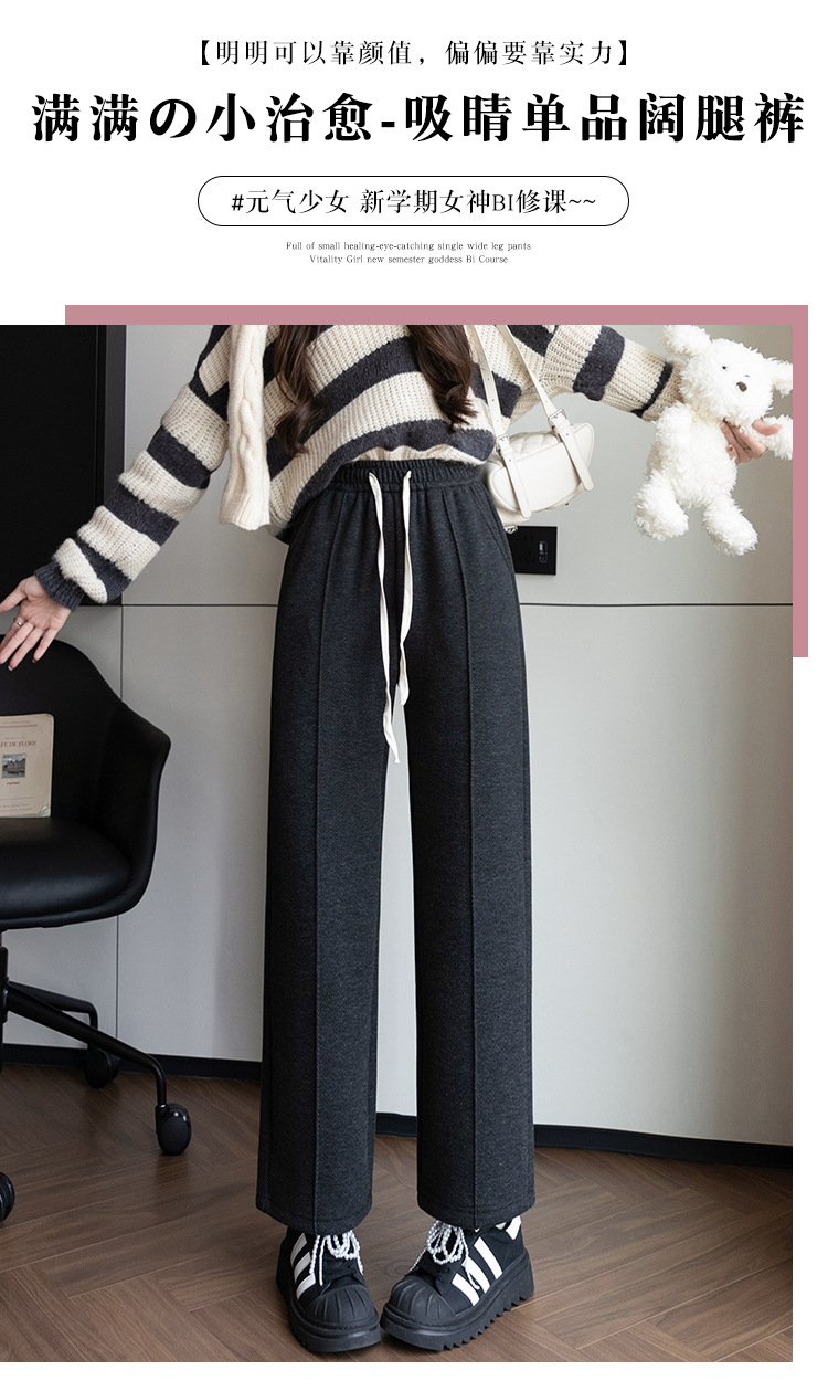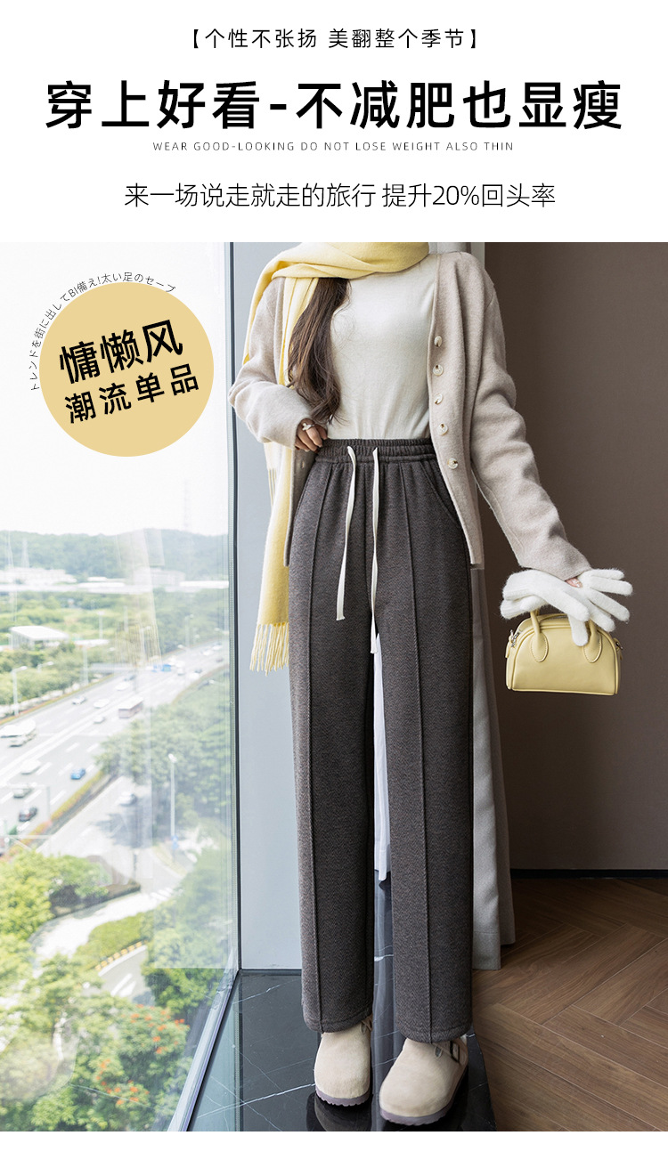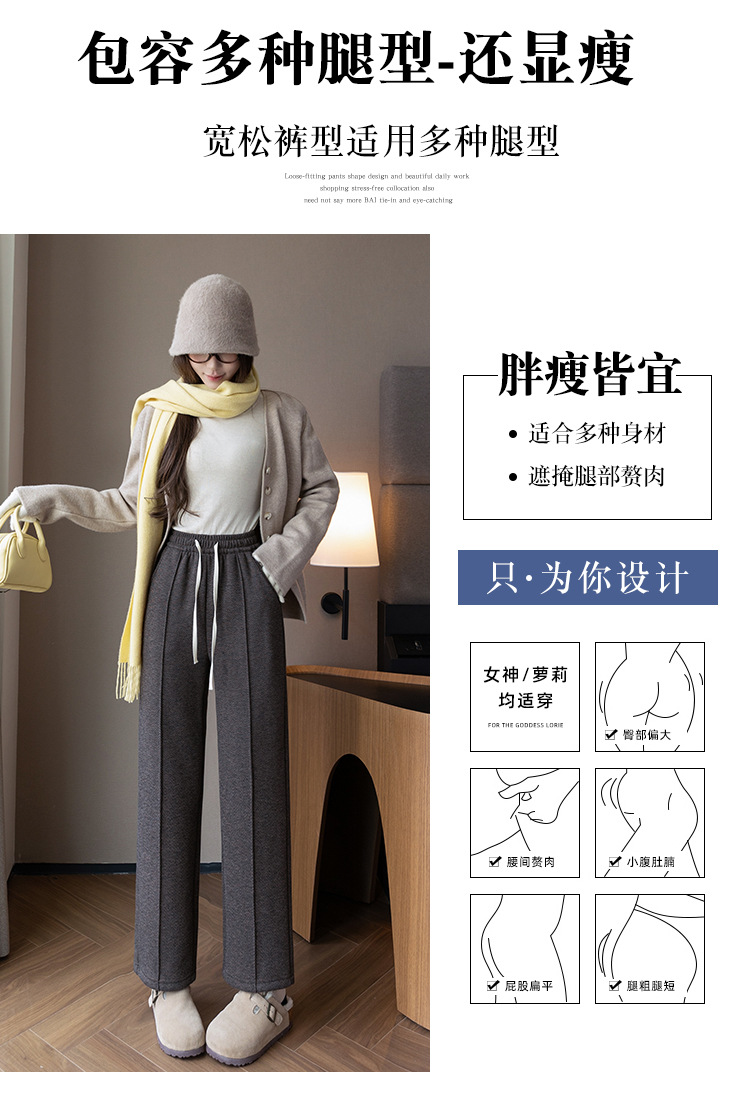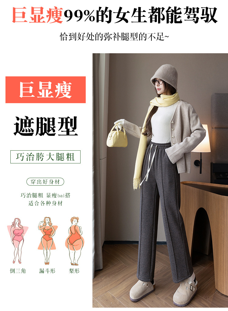 百媚生 加绒高腰外穿冬季阔腿裤保暖加厚拖地裤修身直筒裤6650