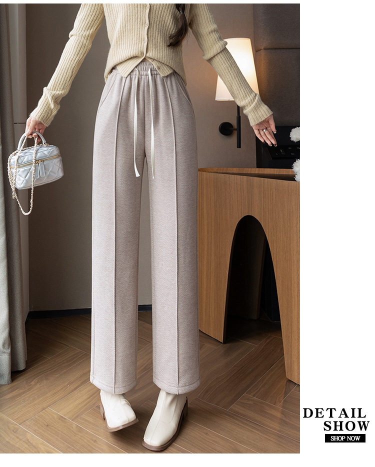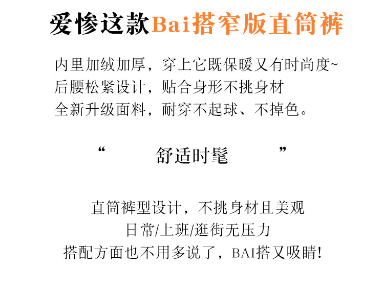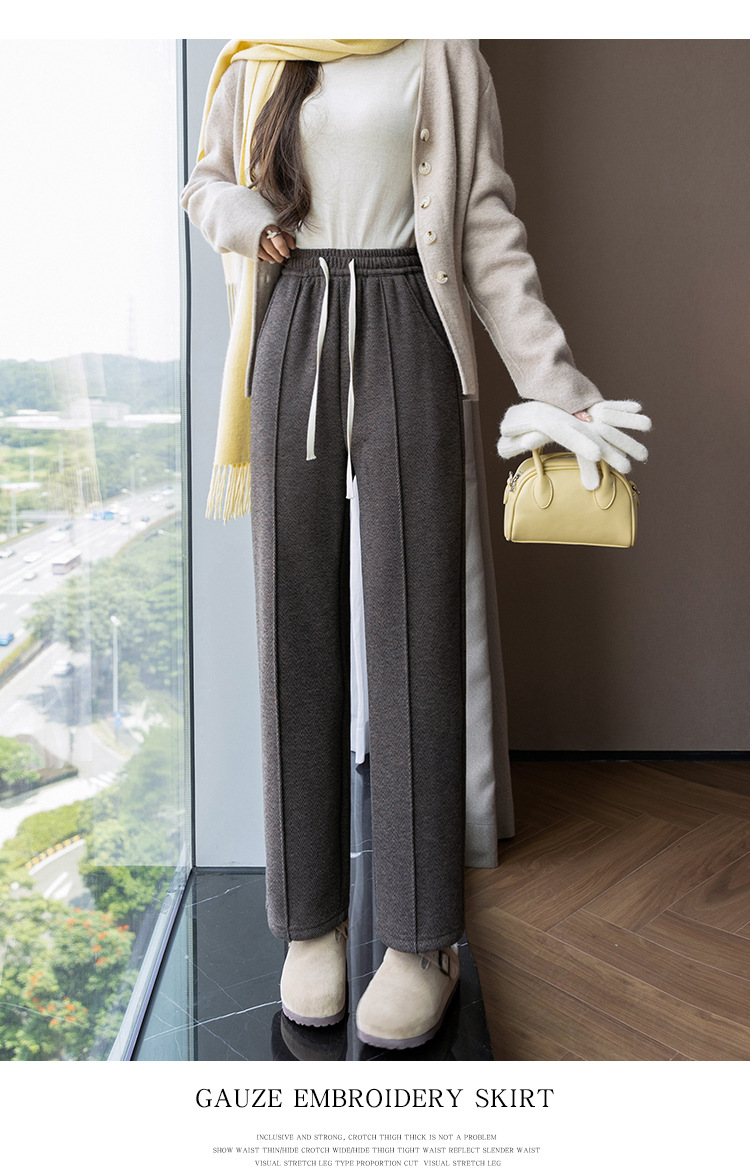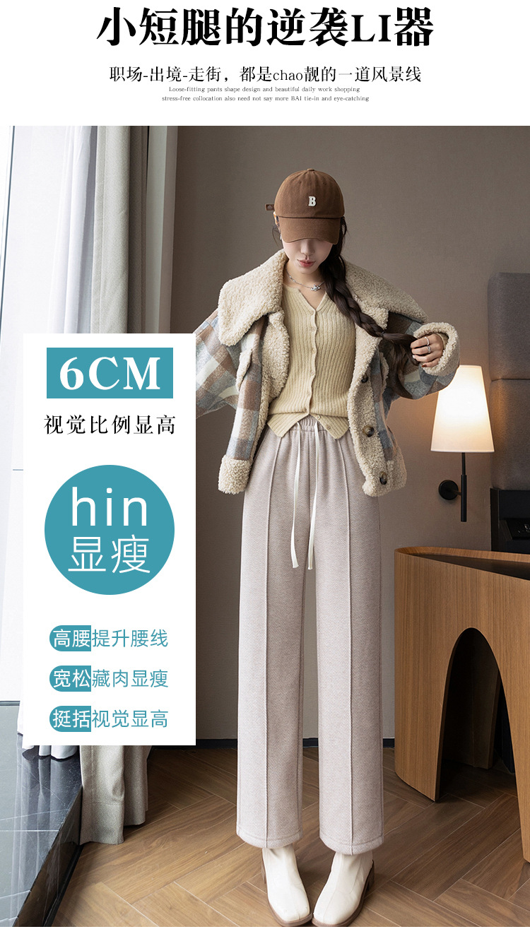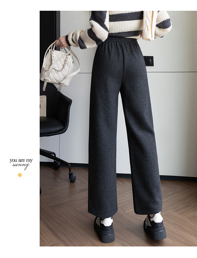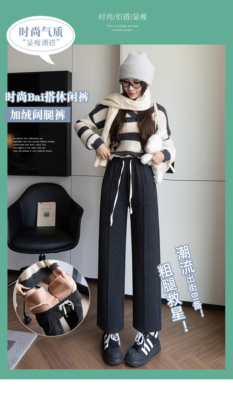 百媚生 加绒高腰外穿冬季阔腿裤保暖加厚拖地裤修身直筒裤6650