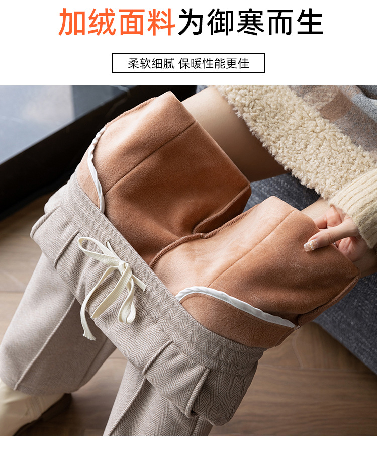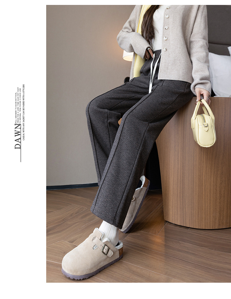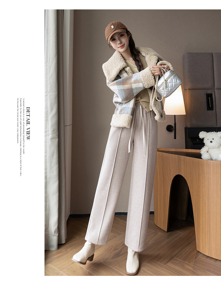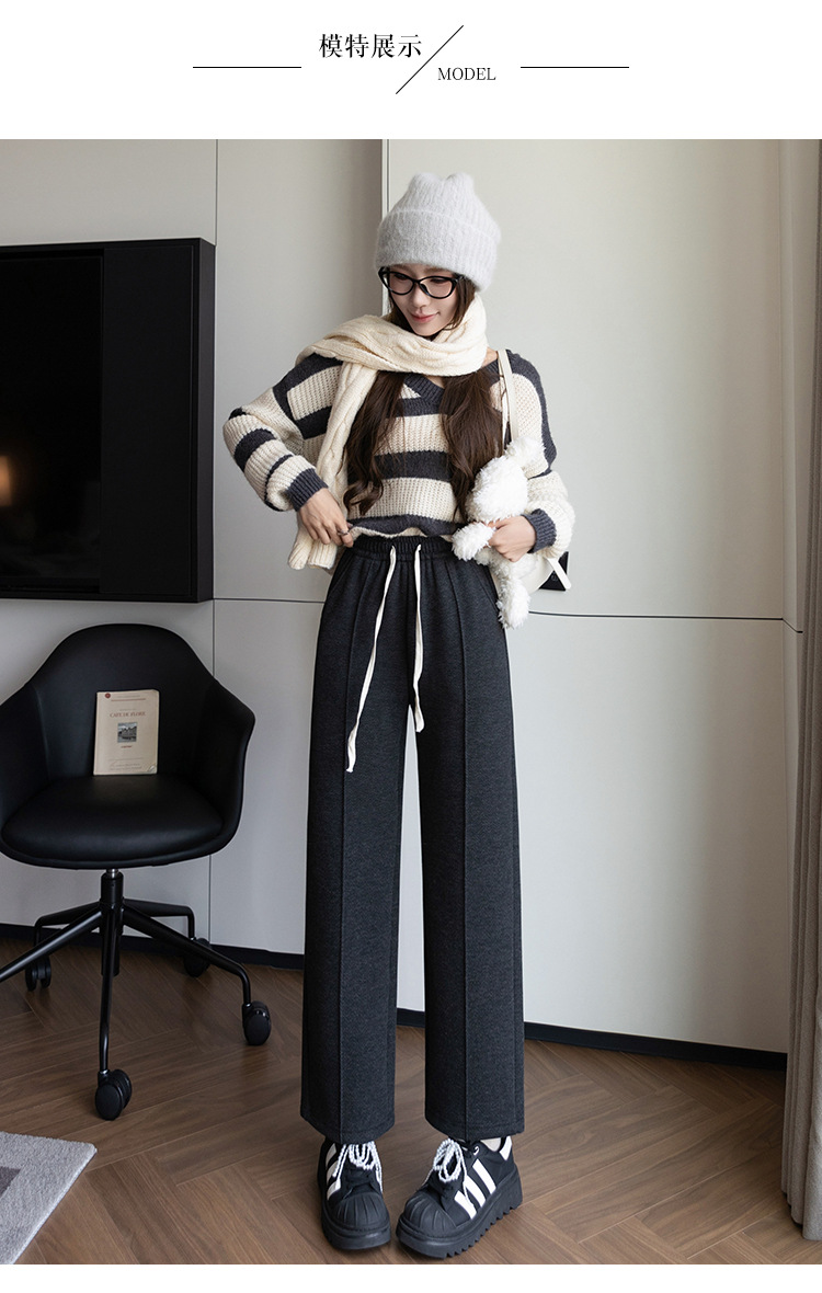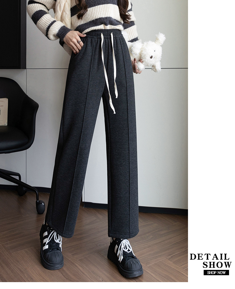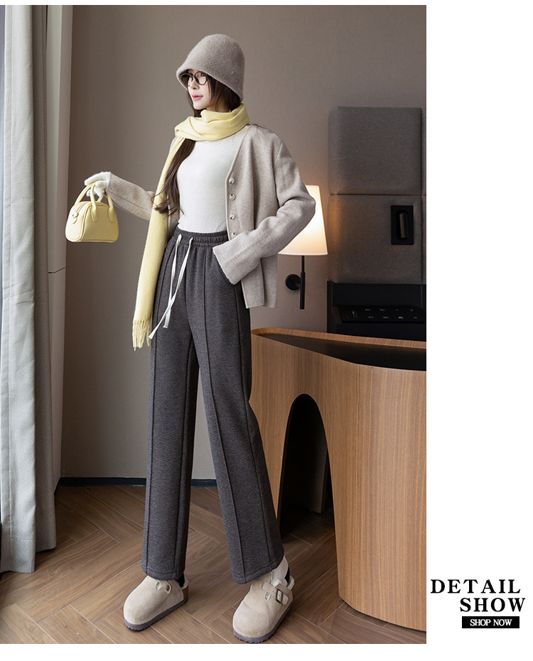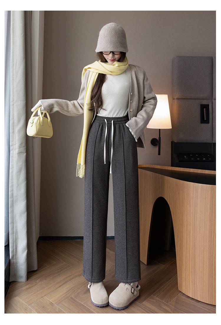 百媚生 加绒高腰外穿冬季阔腿裤保暖加厚拖地裤修身直筒裤6650