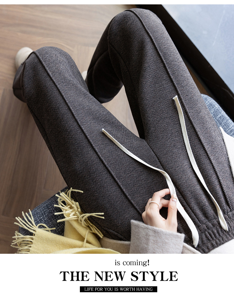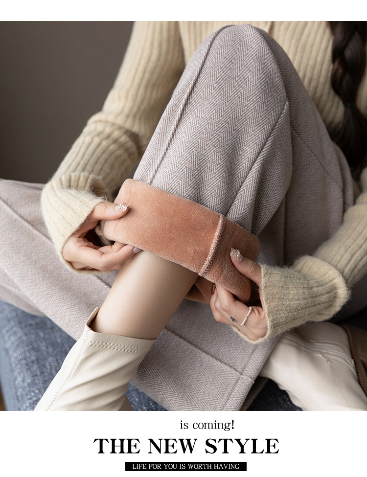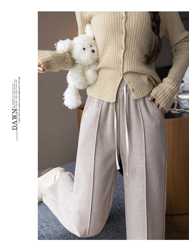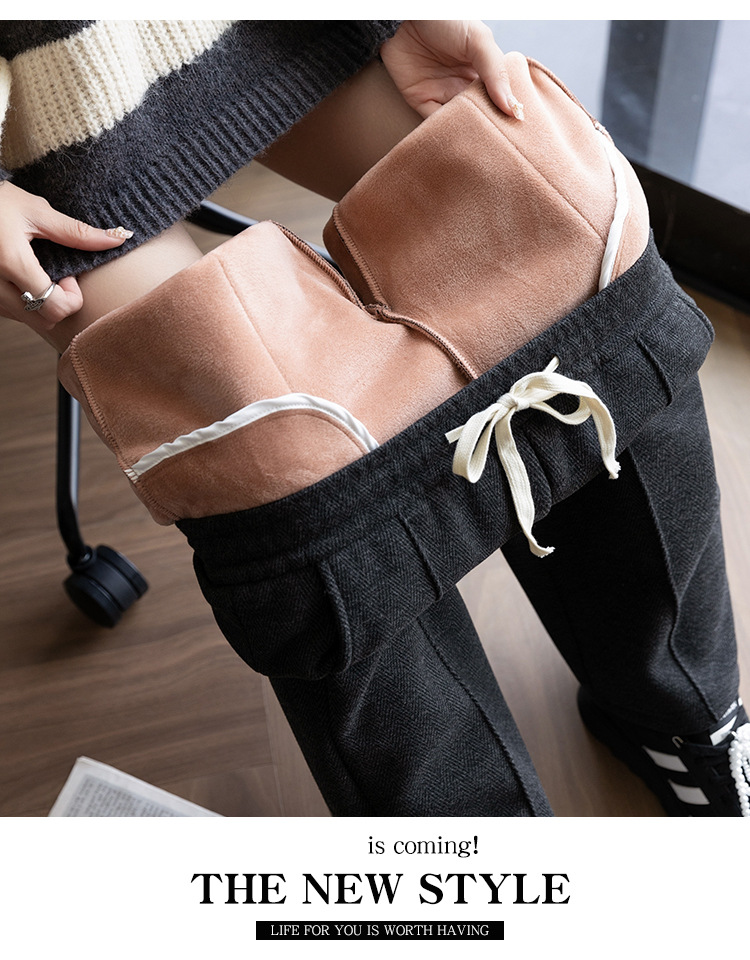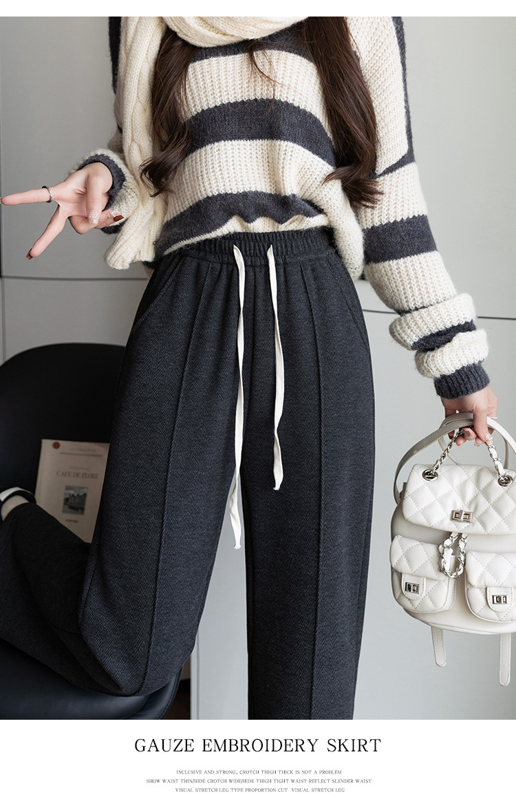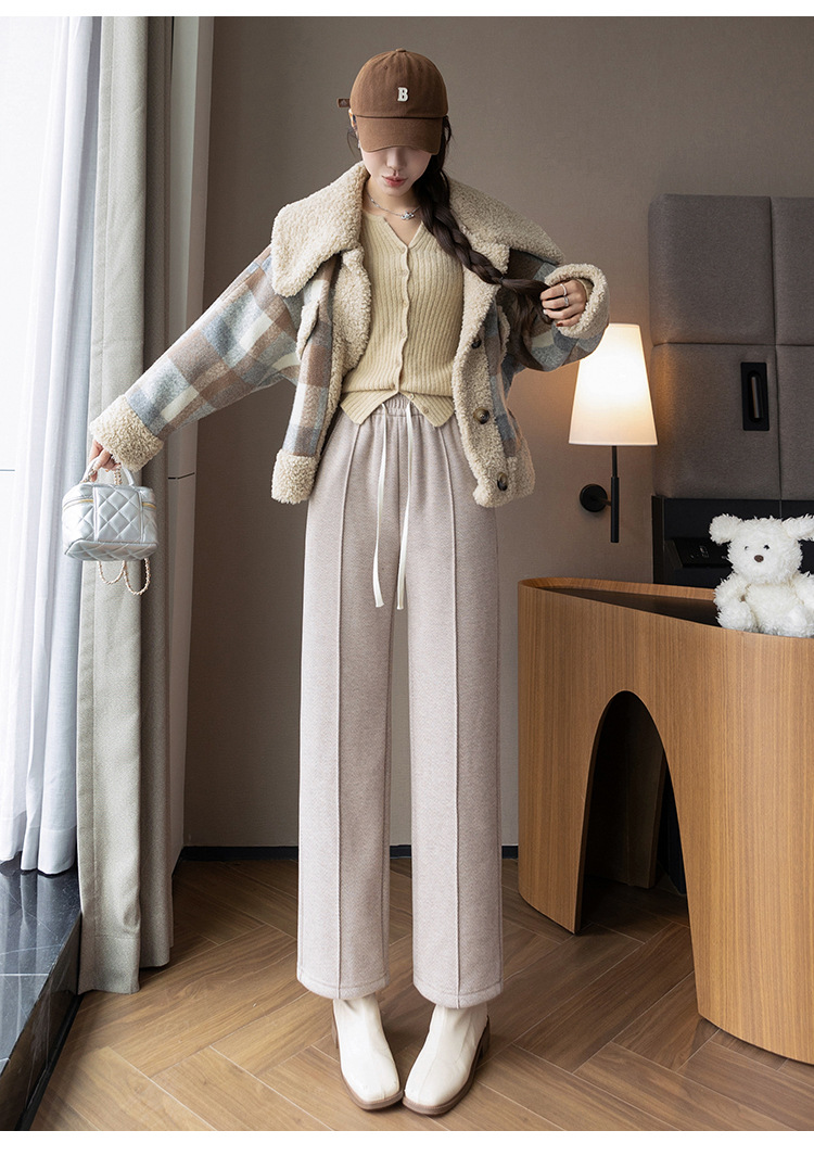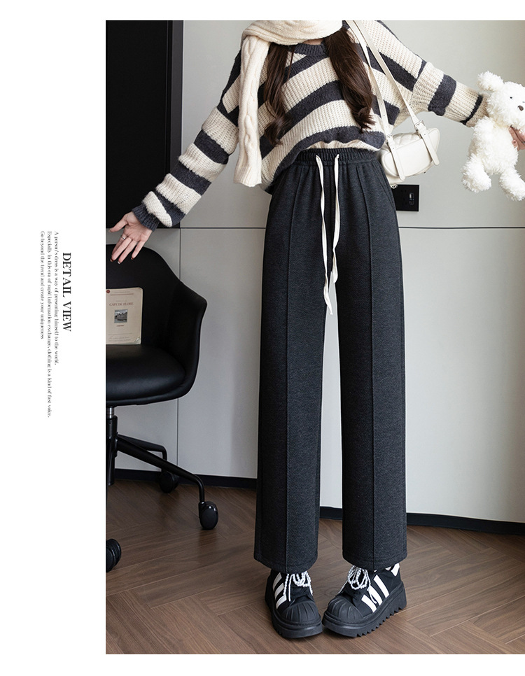 百媚生 加绒高腰外穿冬季阔腿裤保暖加厚拖地裤修身直筒裤6650