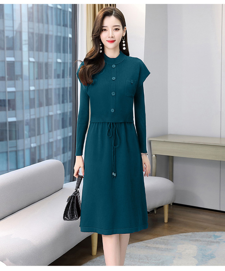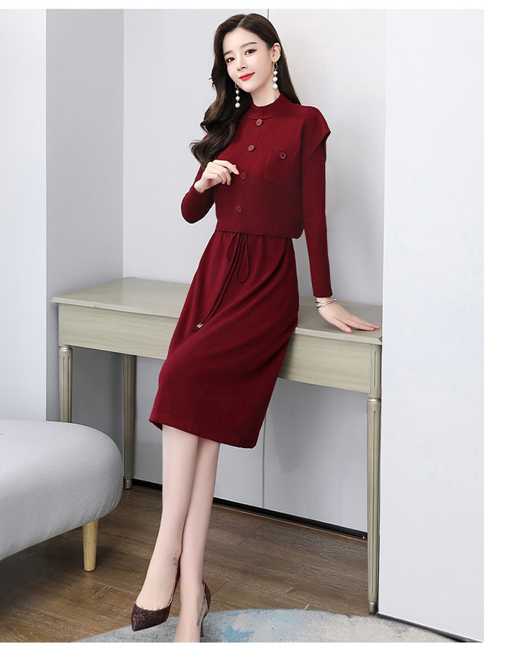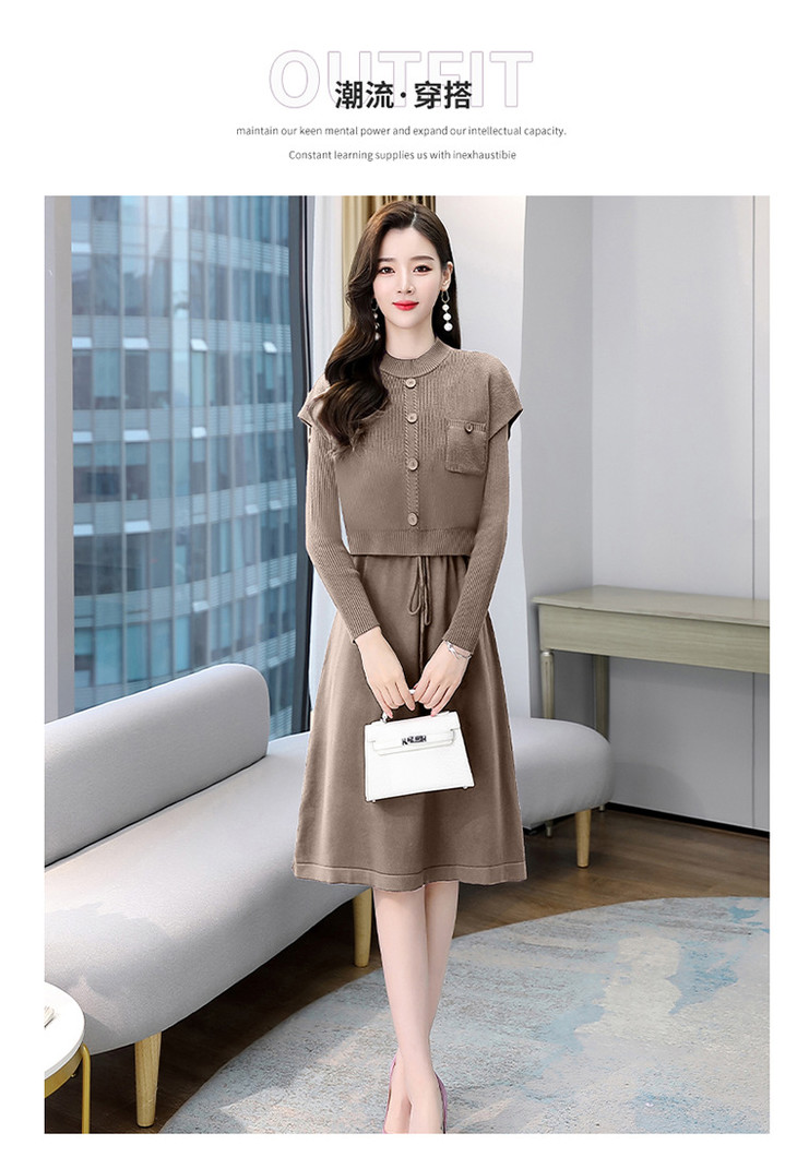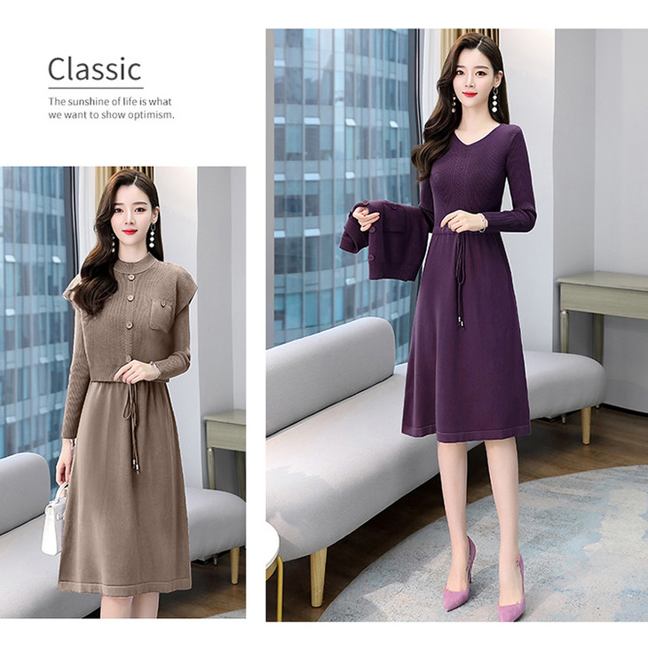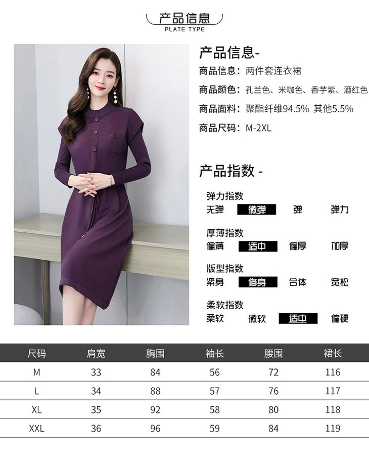 WZNH-XXM2141优雅气质修身显瘦针织两件套连衣裙