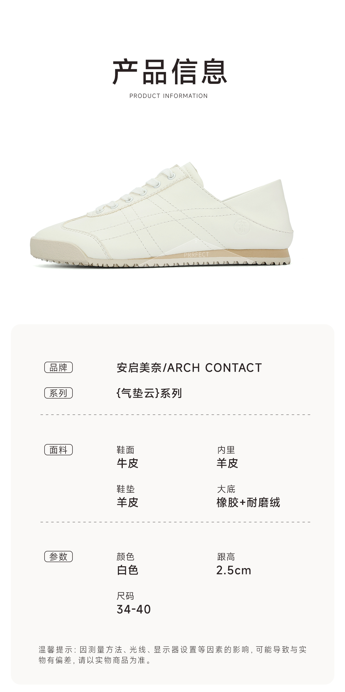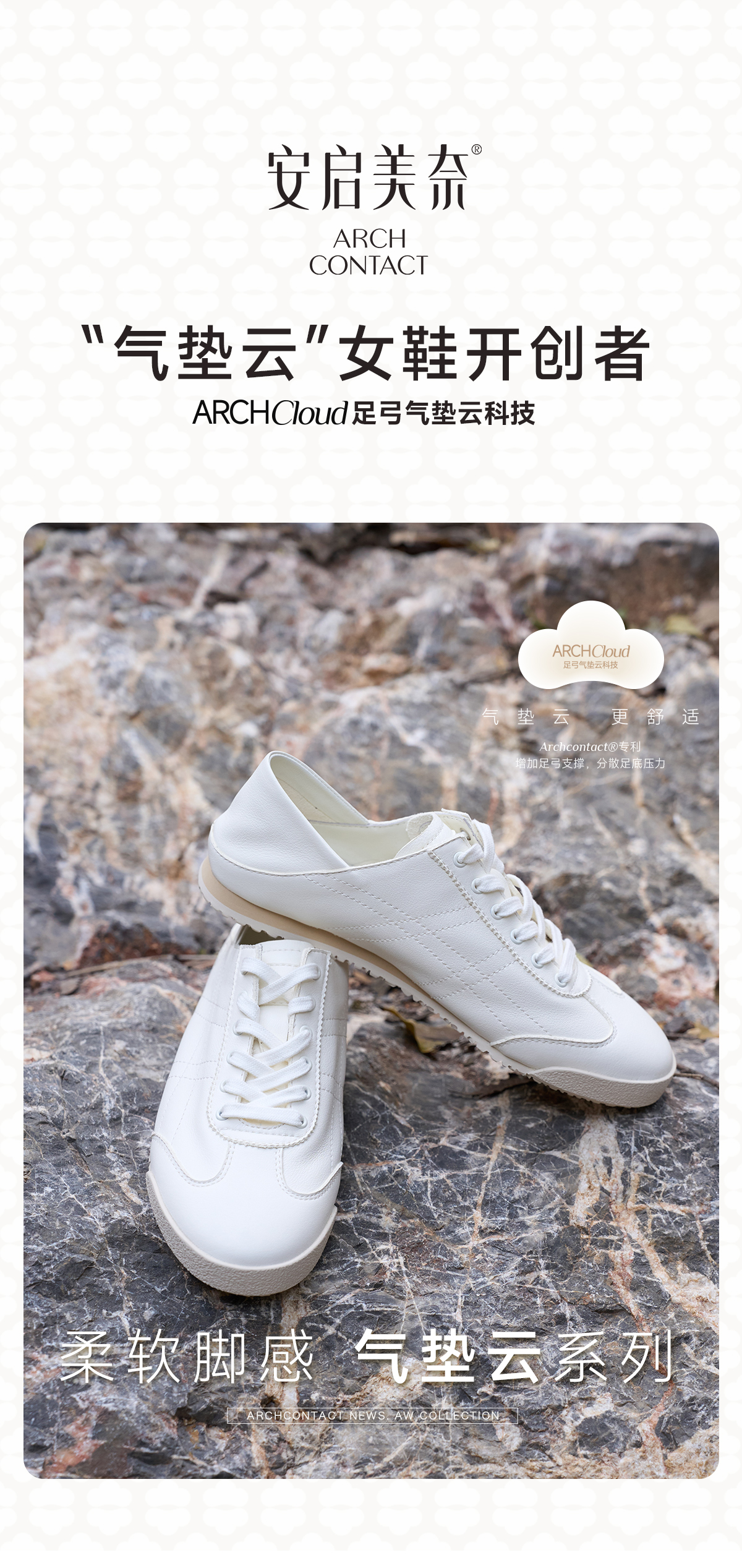 ARCHCONTACT安启美奈气垫云软牛皮懒人两穿可踩跟小白鞋53015 商品图0