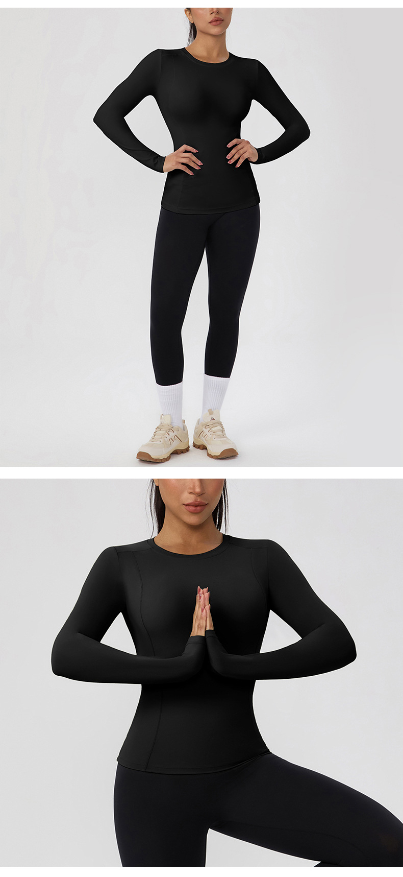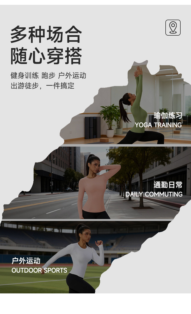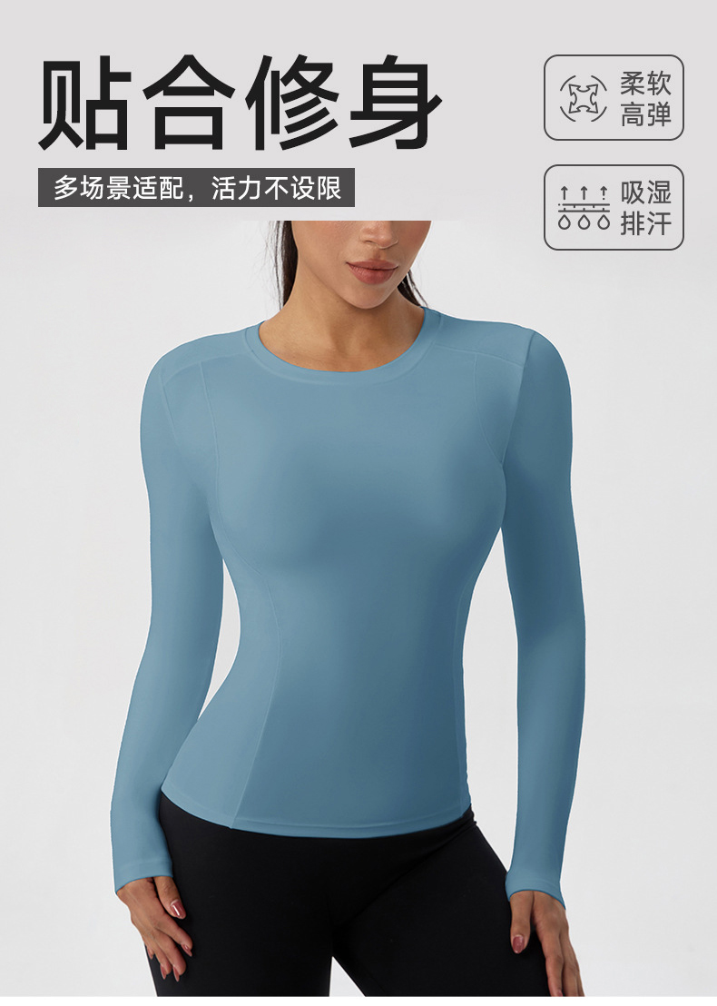 跃牌【欲动春风】系列 秋冬瑜伽长袖紧身运动上衣高弹裸感健身长袖T恤52251