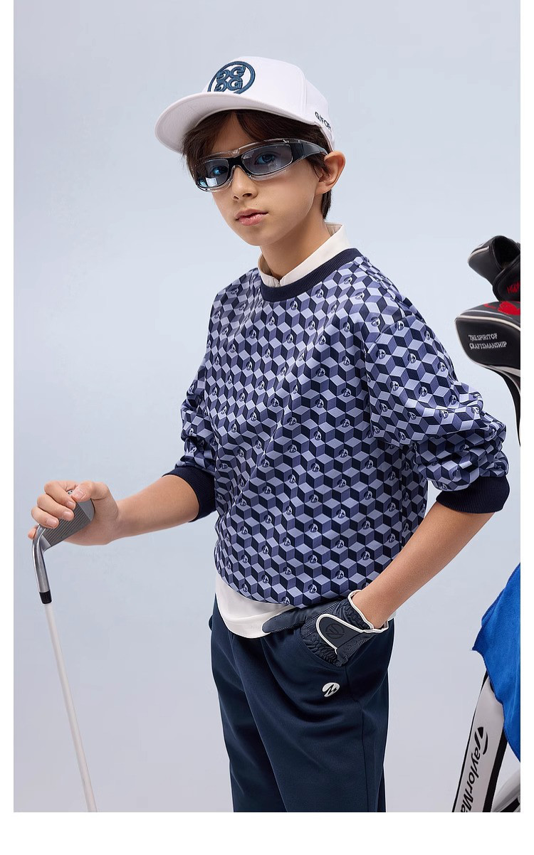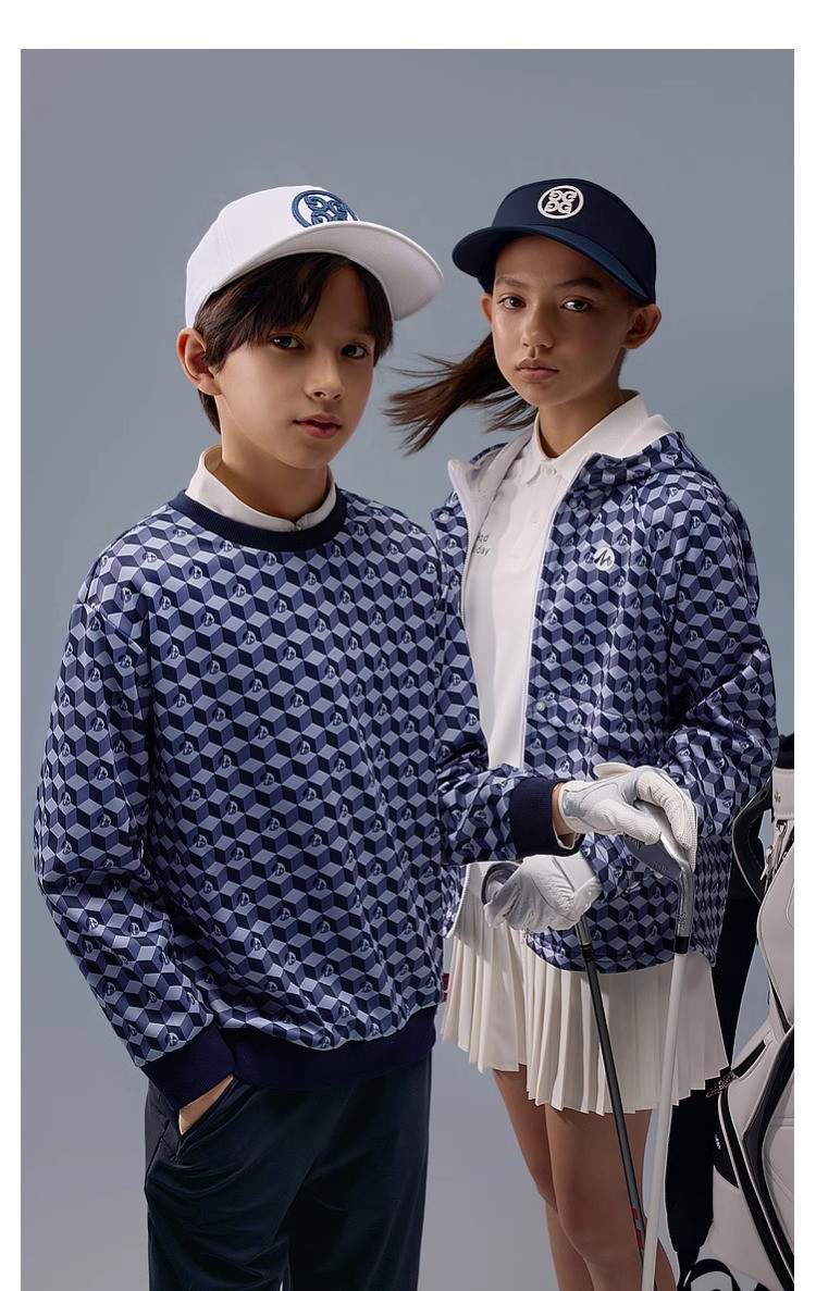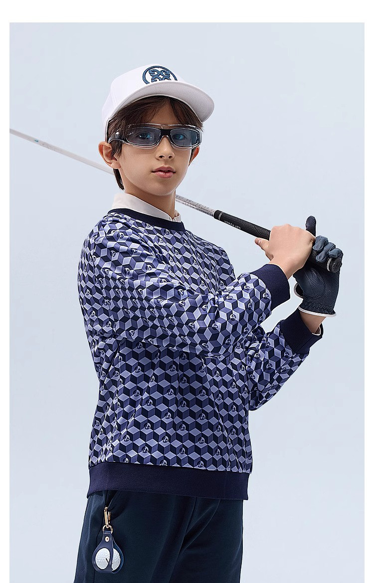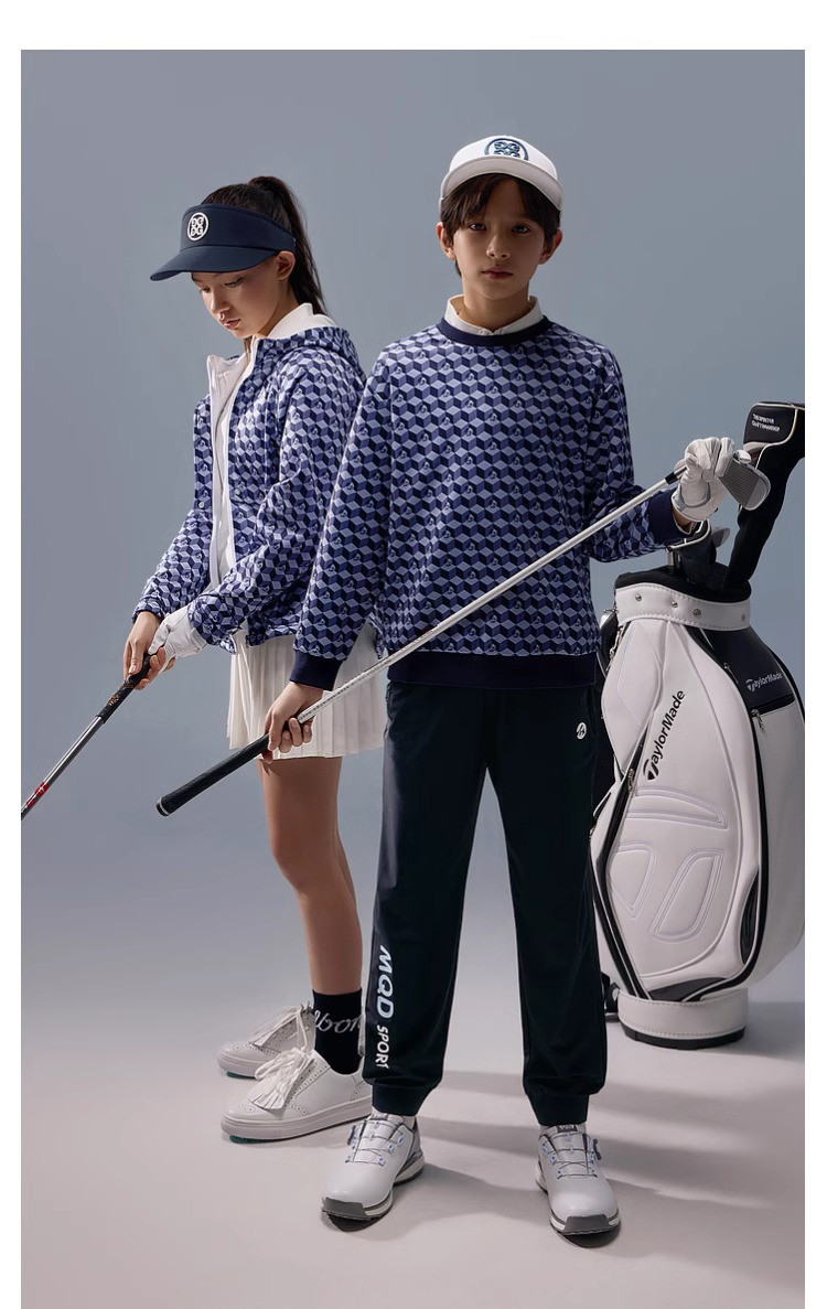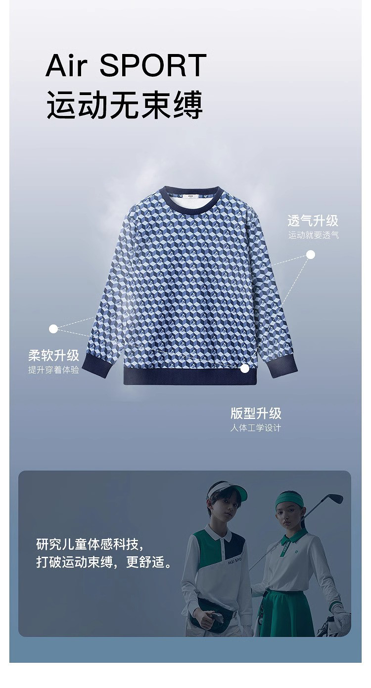 【MQD】高尔夫男童女童立体满印卫衣柔软亲肤透气运动舒适空气卫衣