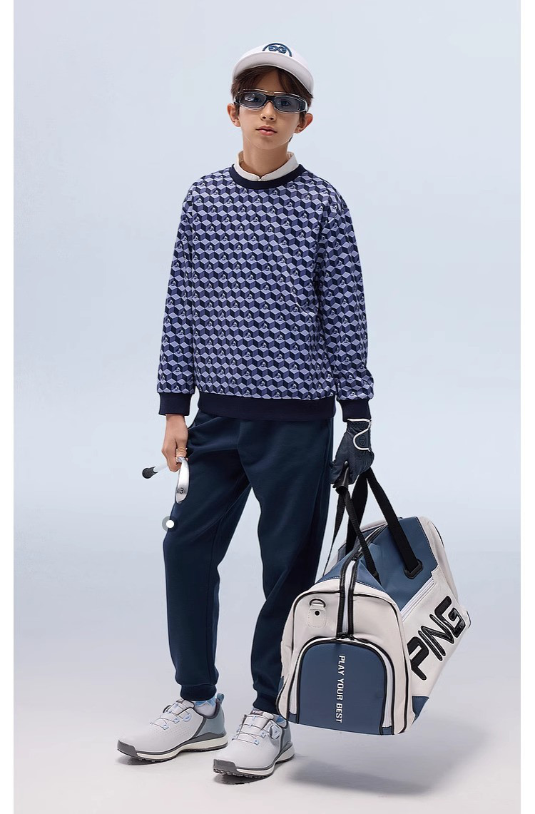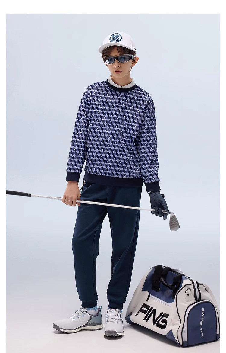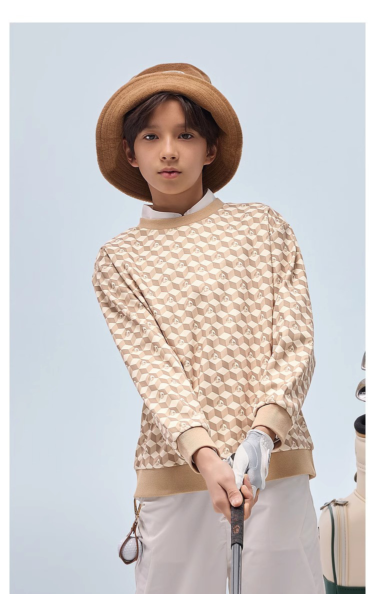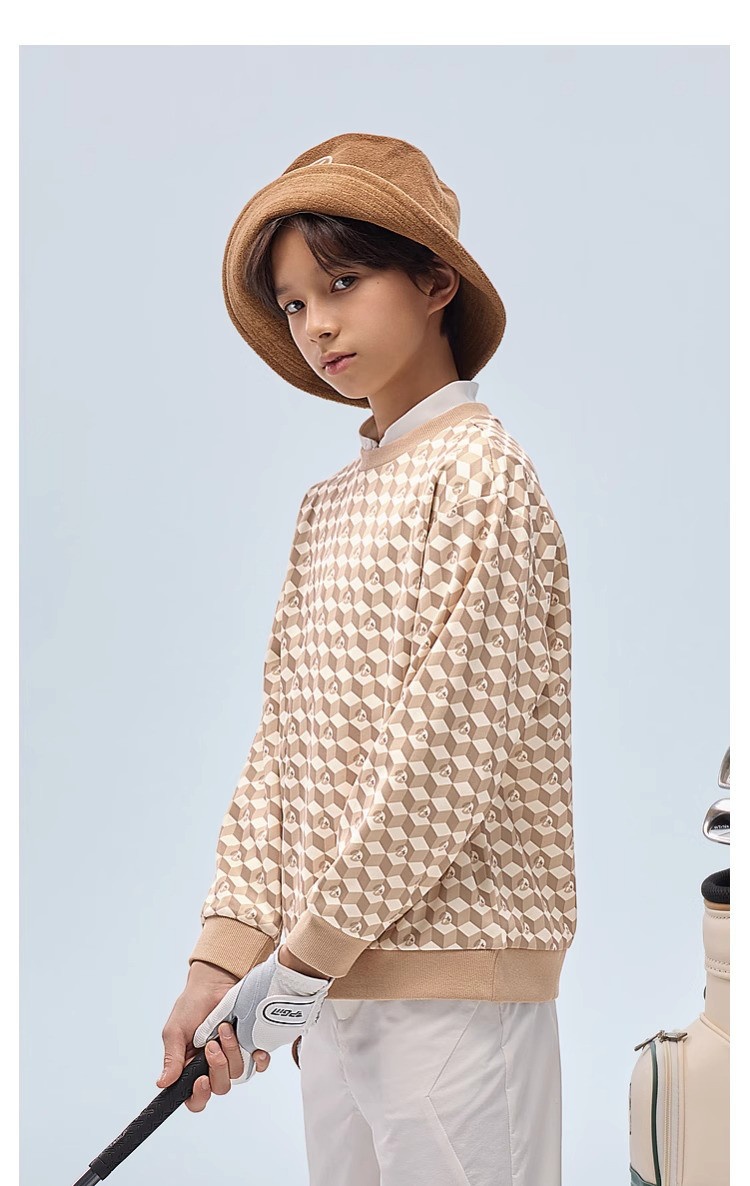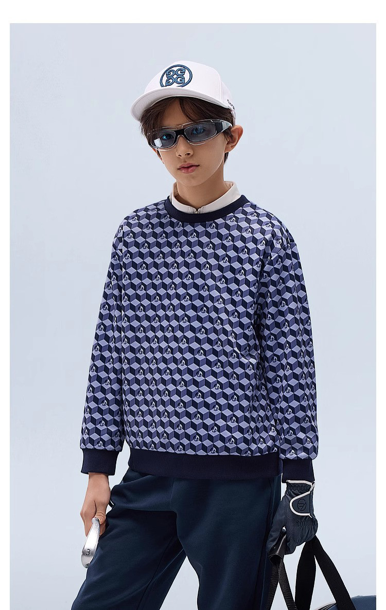 【MQD】高尔夫男童女童立体满印卫衣柔软亲肤透气运动舒适空气卫衣