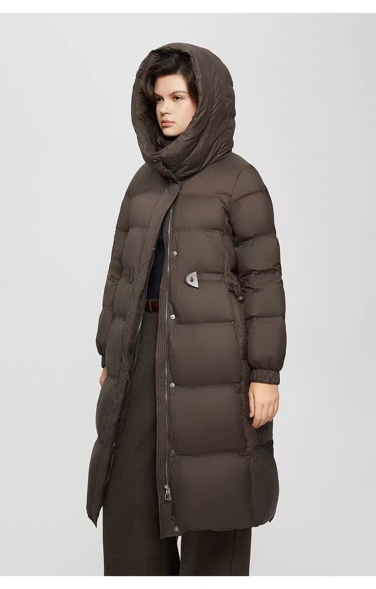官网在售1203元【她图品牌】剪标-绒子含量90%高级感连帽收腰保暖白鸭绒羽绒服-喜出