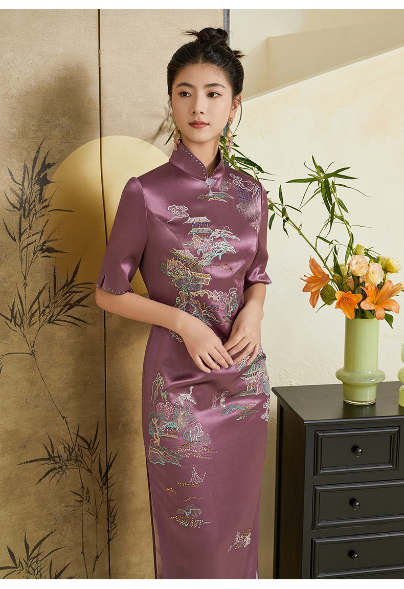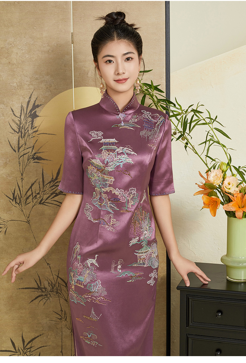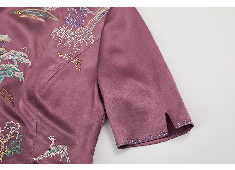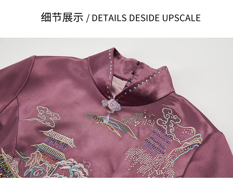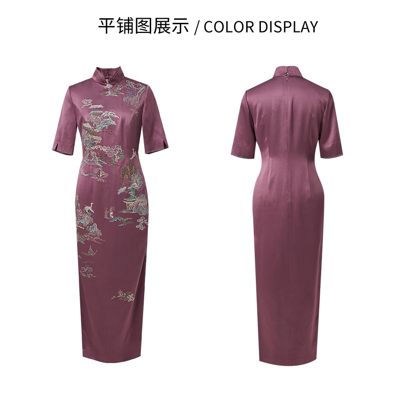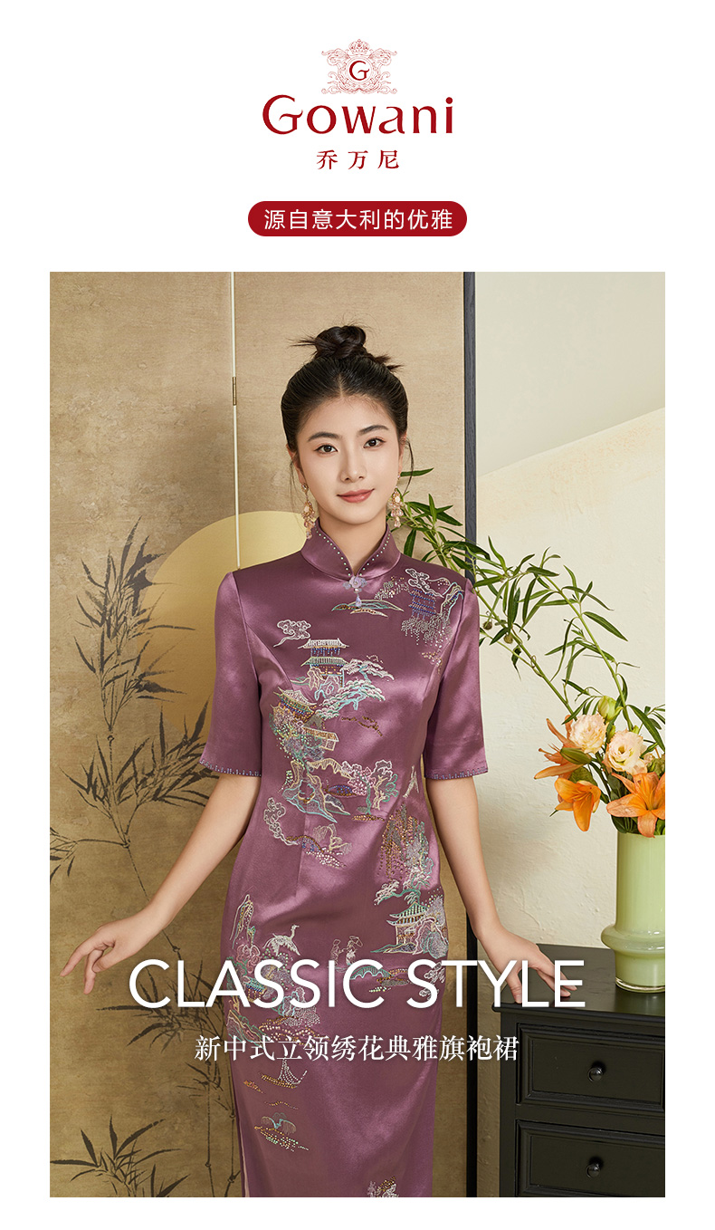 乔万尼刺绣旗袍连衣裙祥云复古中袖高贵典雅设计ET3E630