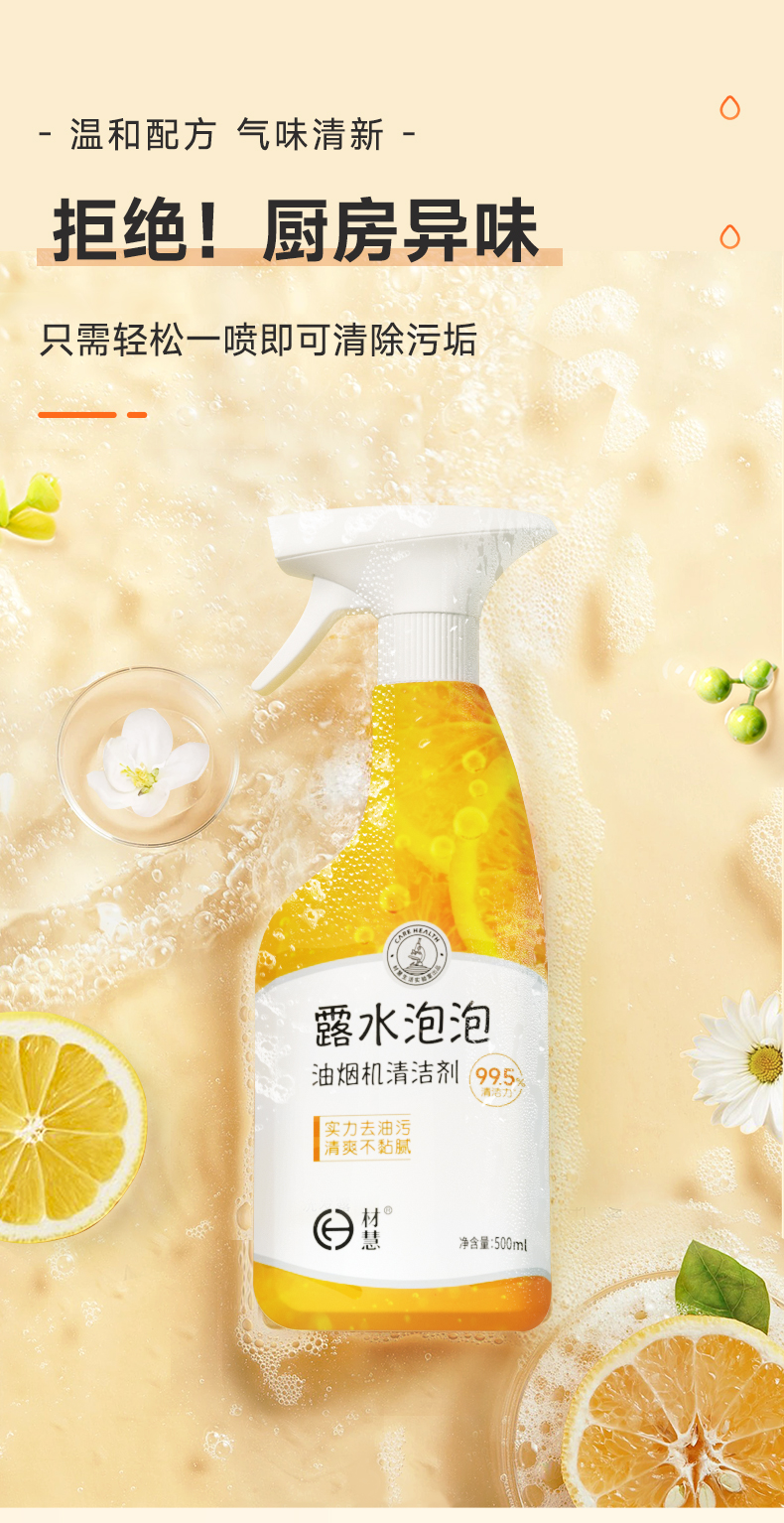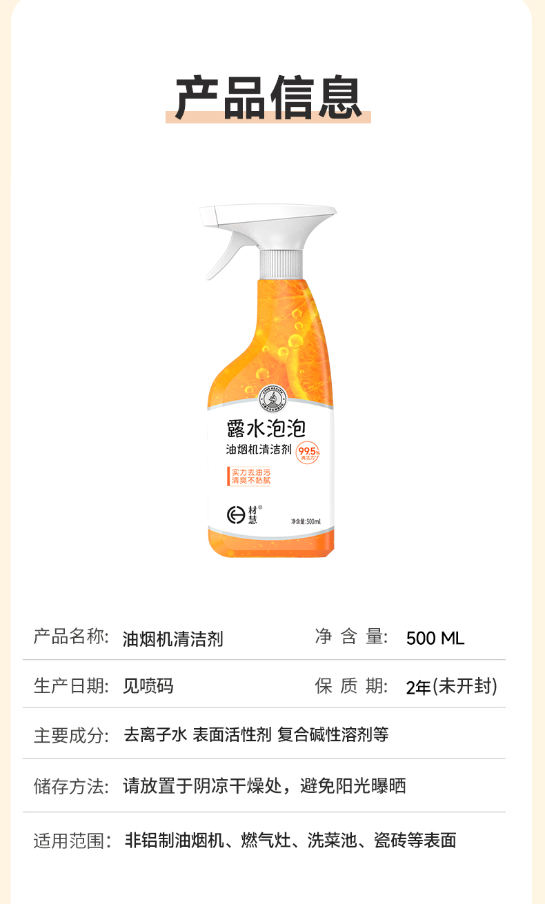 材慧厨房油烟机清洗剂(500ml/瓶) 买一瓶送一个喷头!买两瓶送副手套*2+海绵擦*1+喷头*1