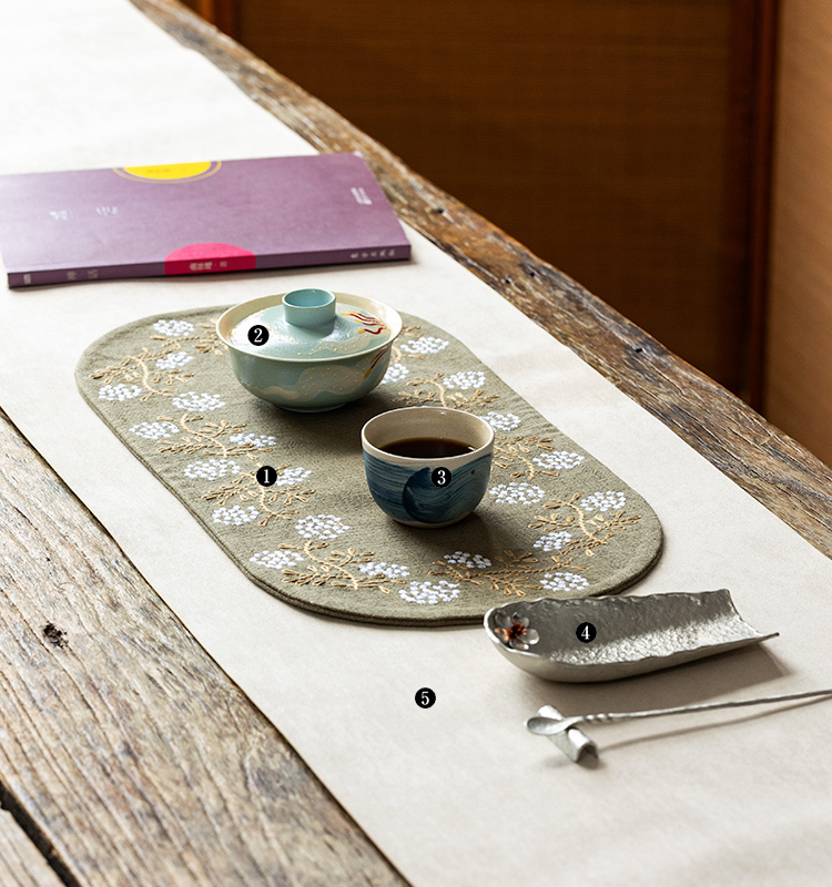 茶香记苎麻刺绣长圆形一人席40*20cm茶席布中式茶台桌布茶道零配